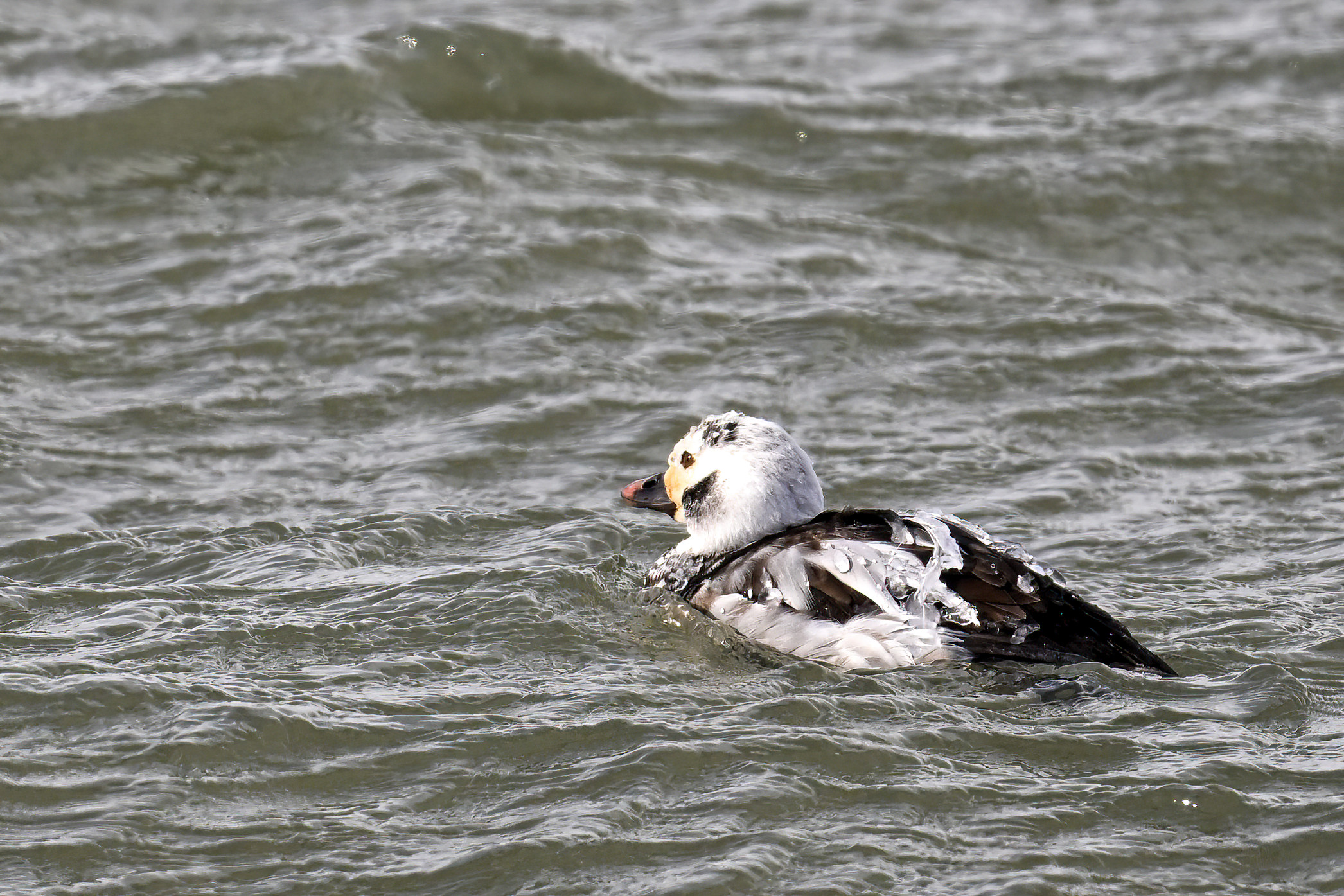 (In shot above, white blob on ice to the right of center = sleeping Tundra Swan.)