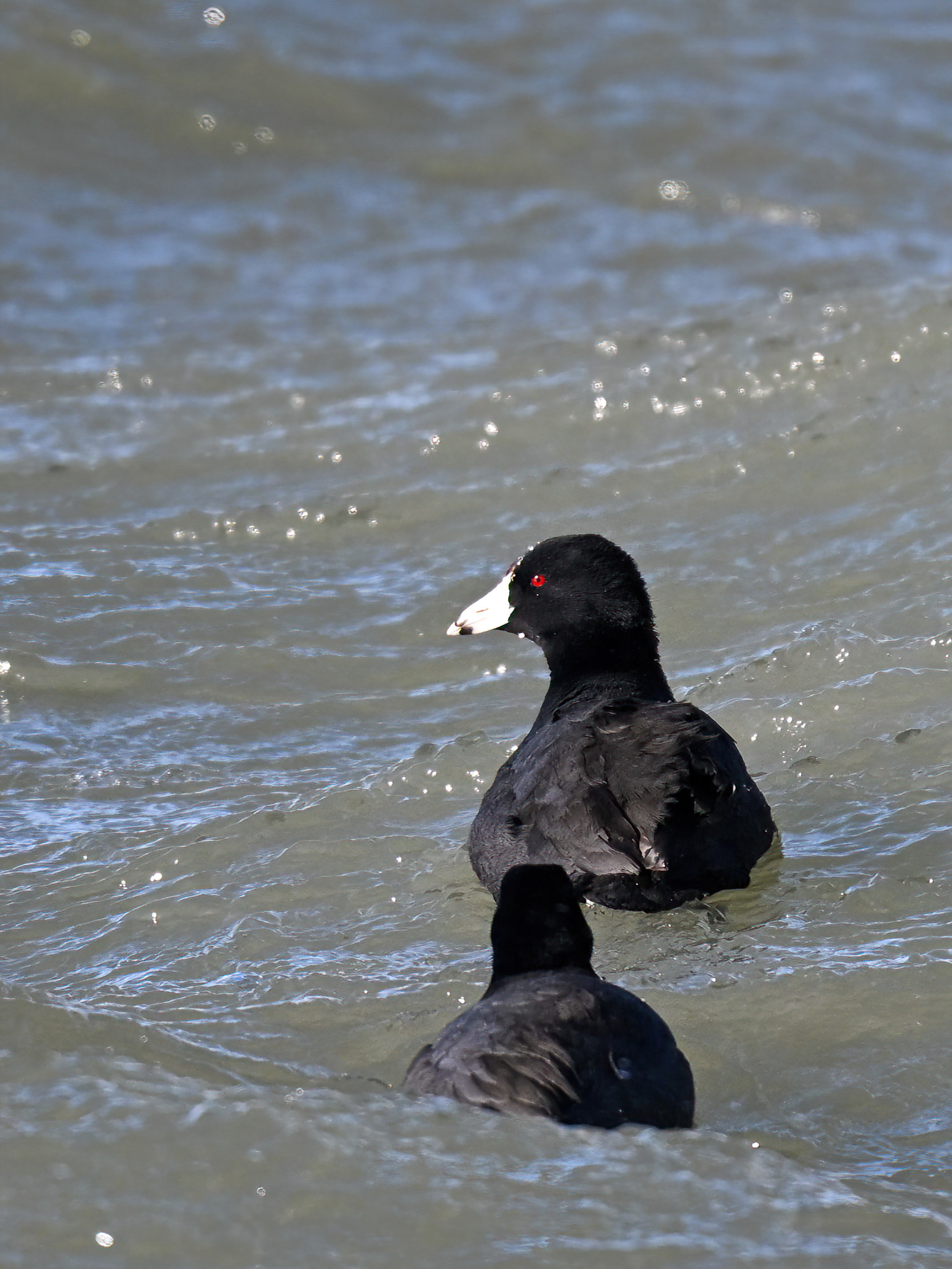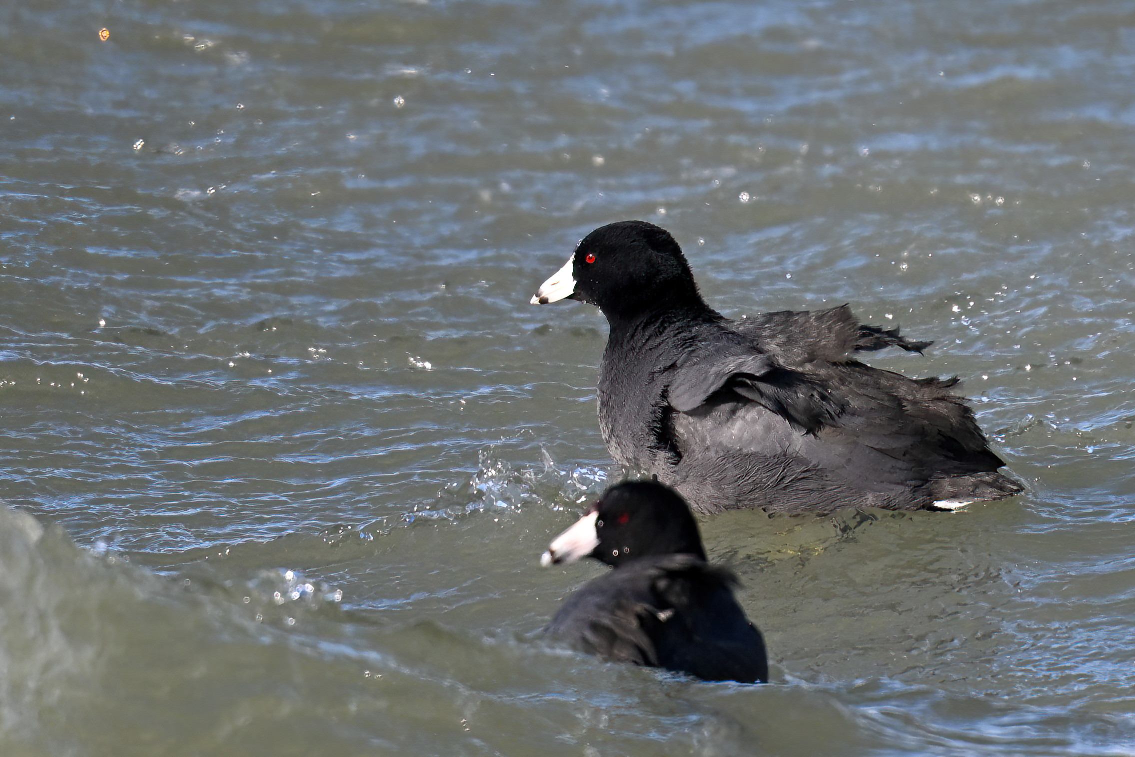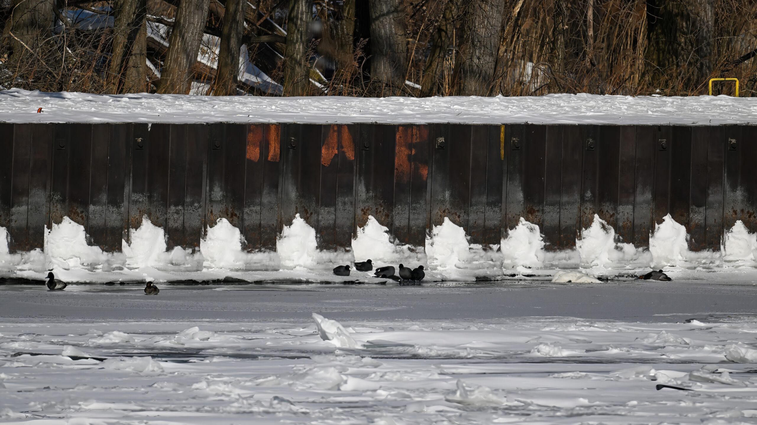 South Pier view northeastAmerican Coots on ice