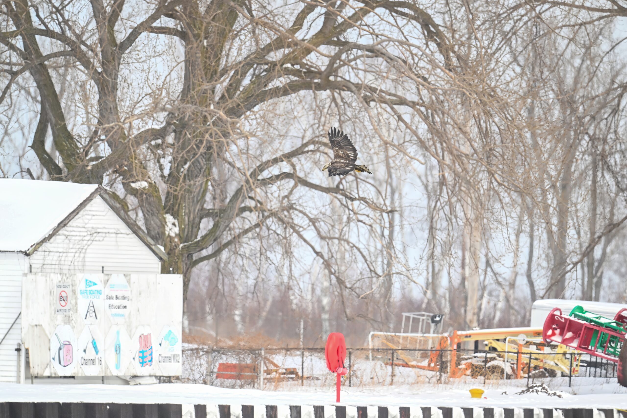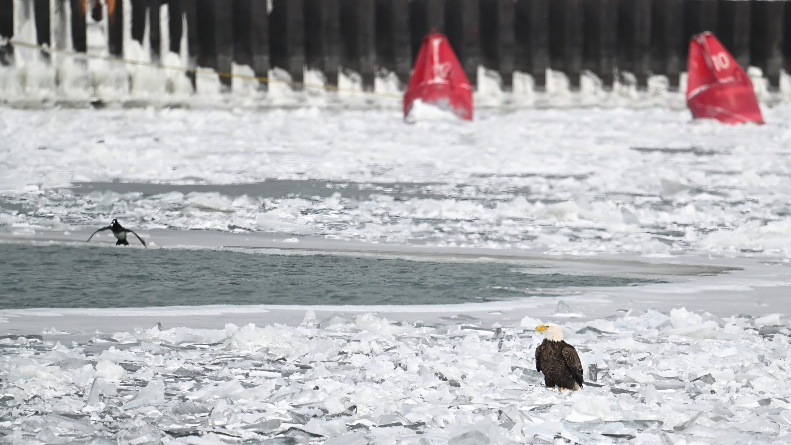 In the few spots with open, unfrozen water, it’s a bird activity magnet including Bald Eagle: