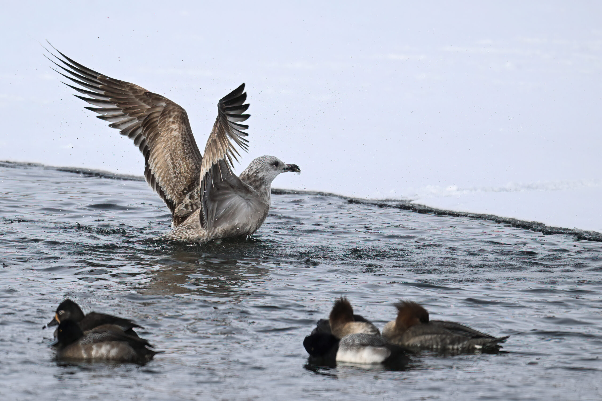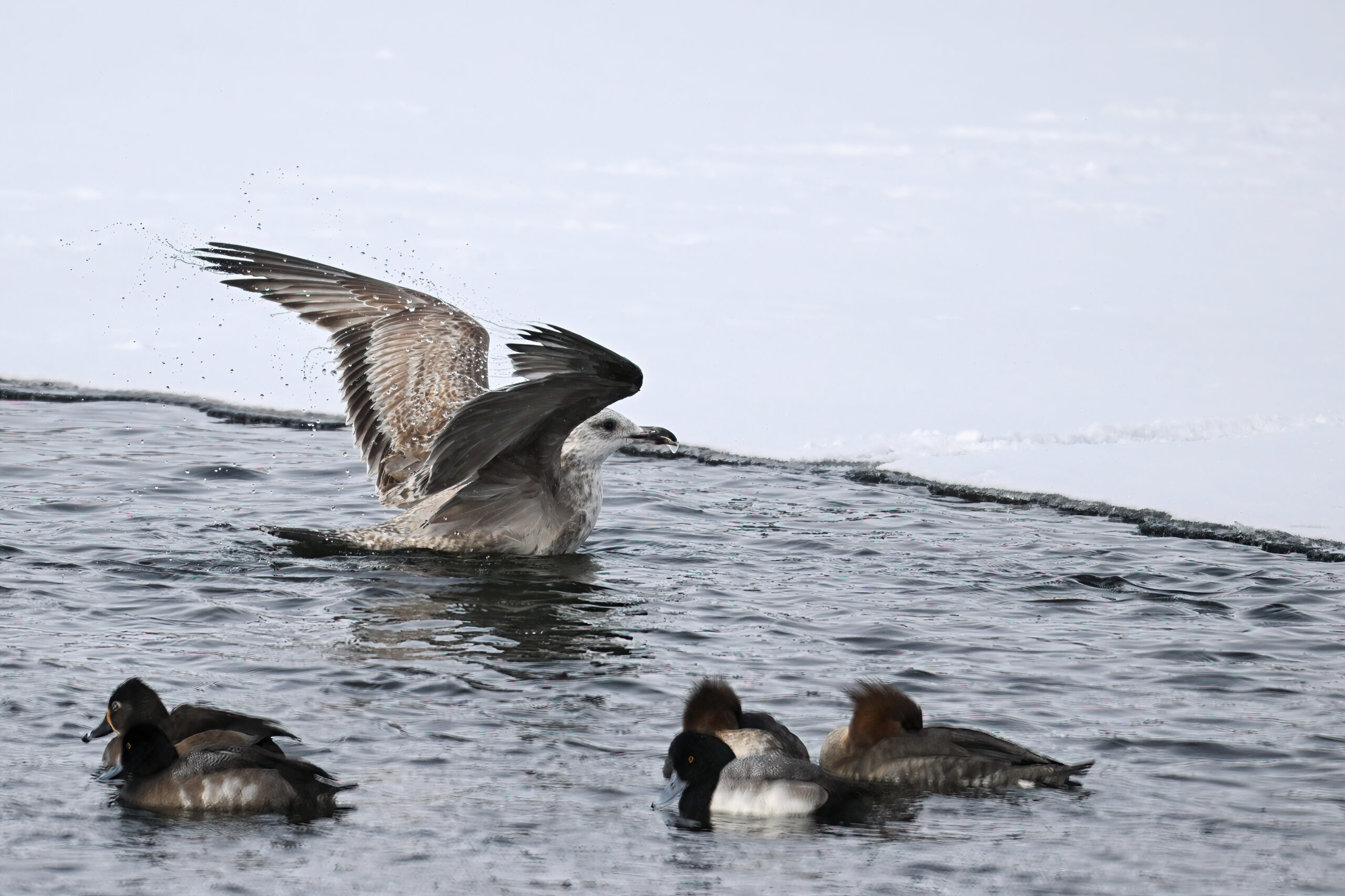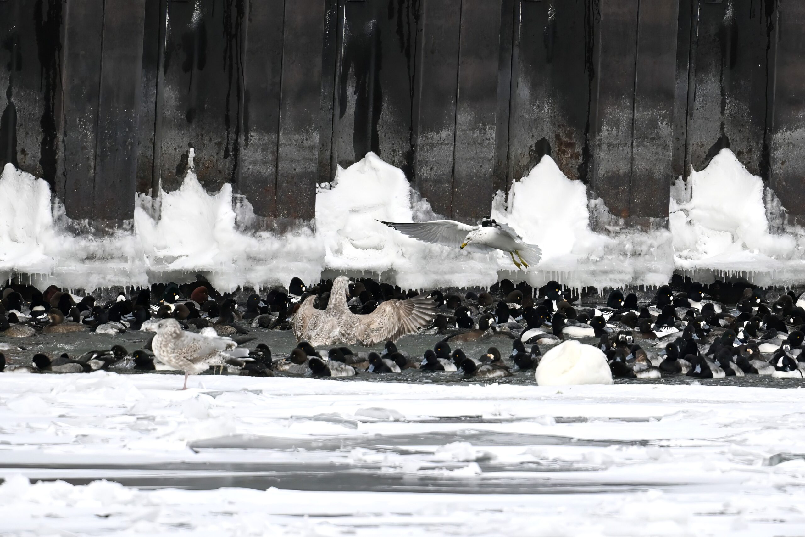 As with the Bald Eagles the day before, today it was gulls successfully ‘ice fishing’ despite the significant duck presence: