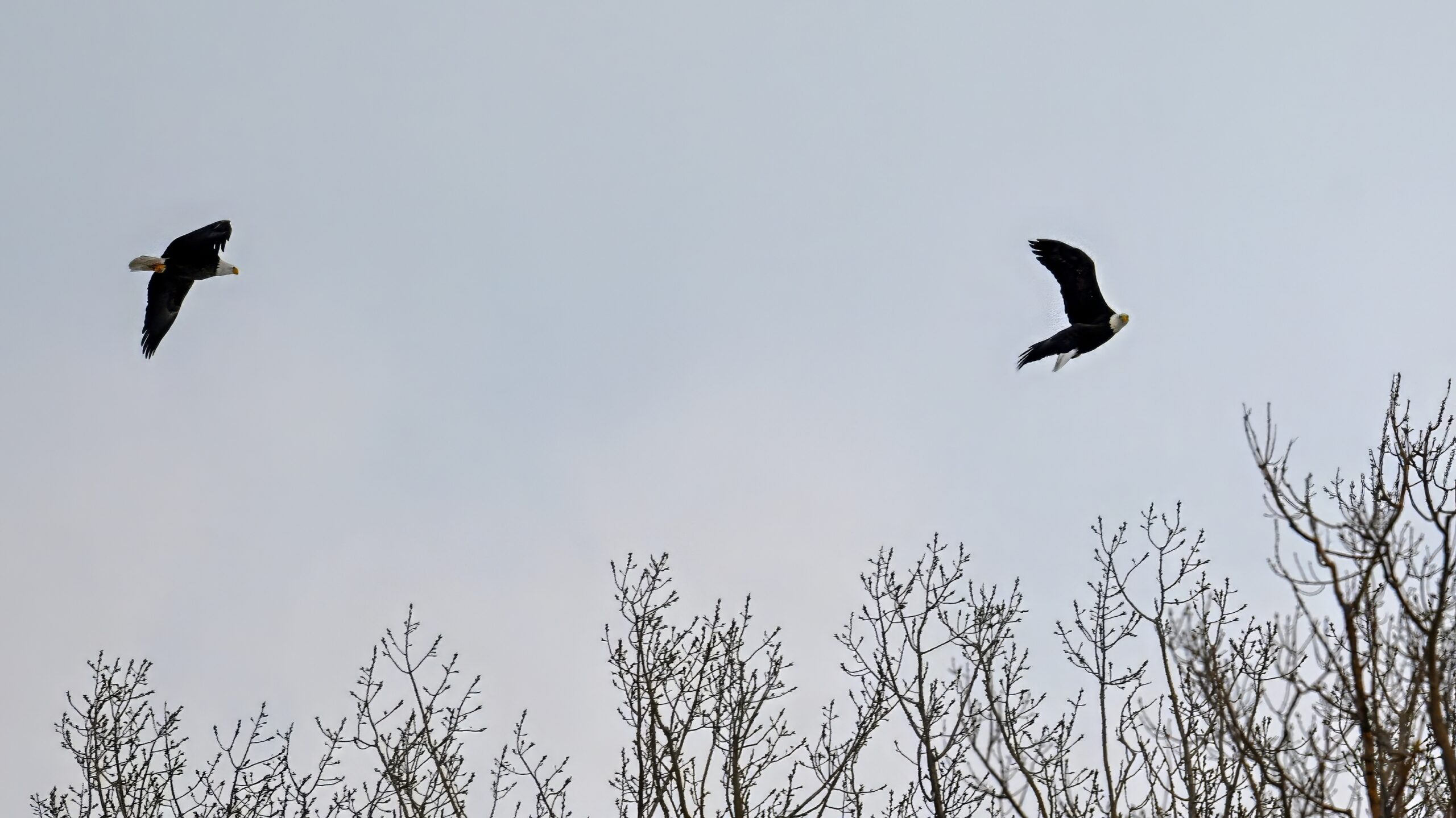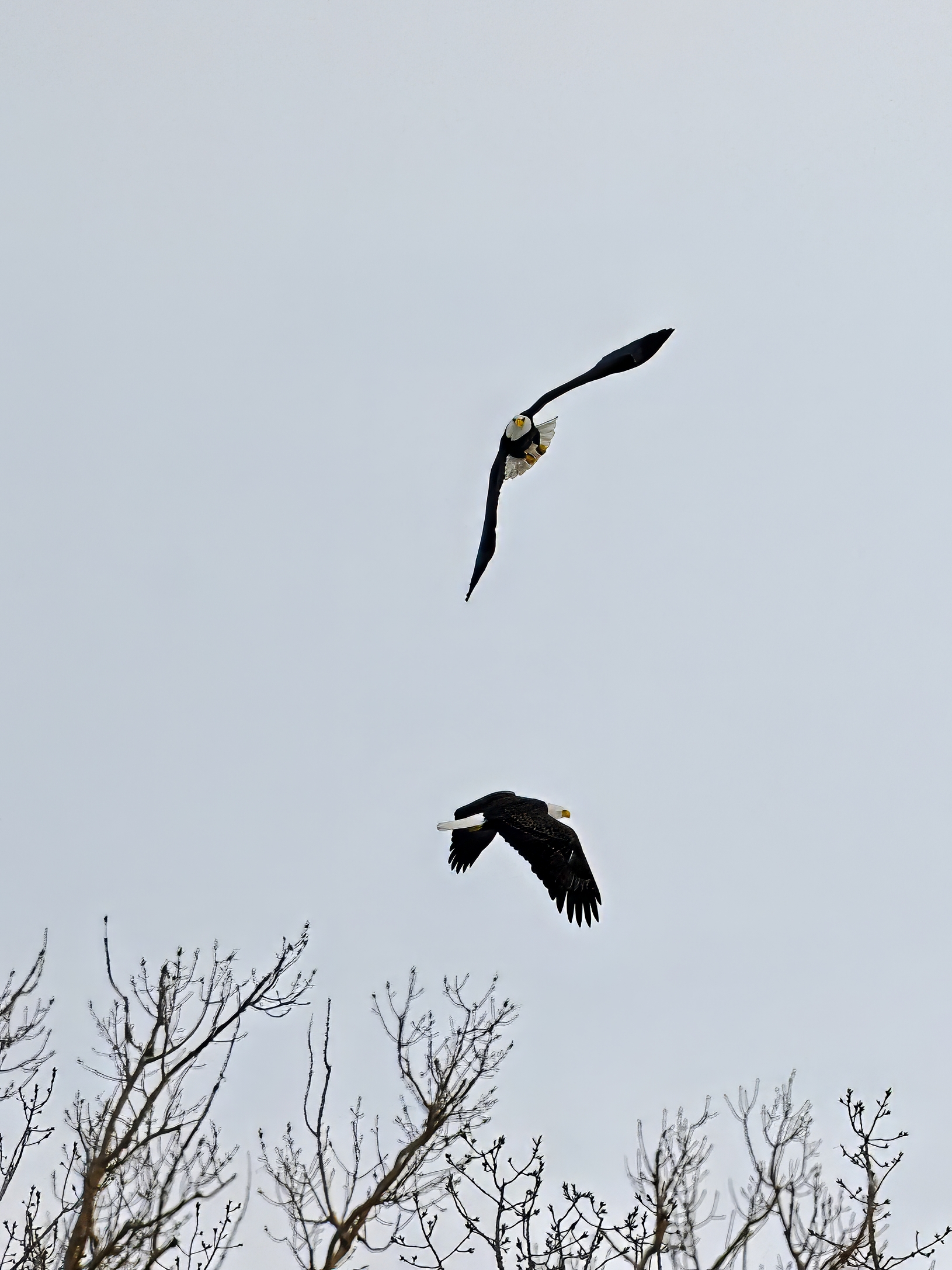 Finally for today, Bald Eagles cavorting over North Pier area: