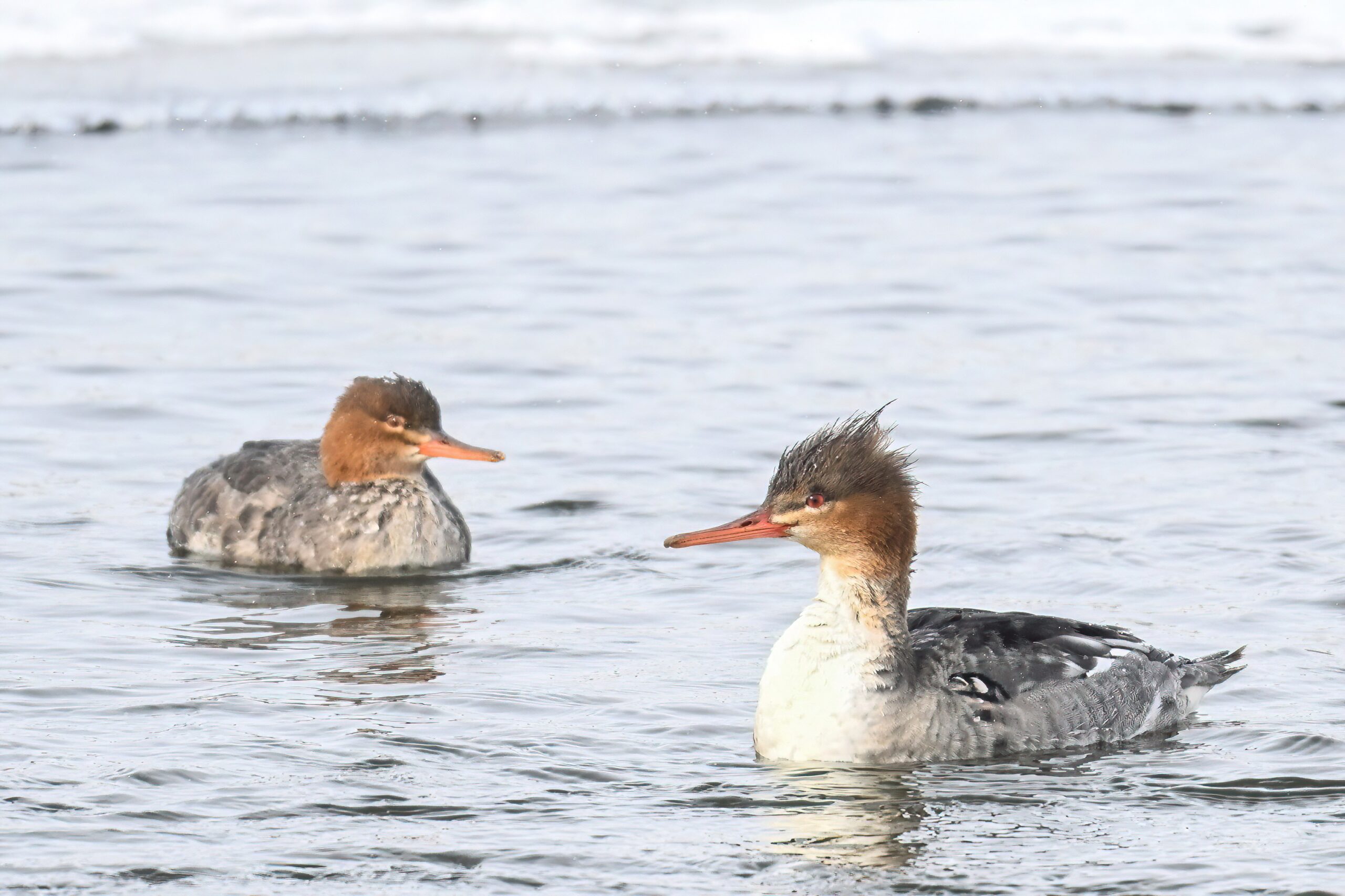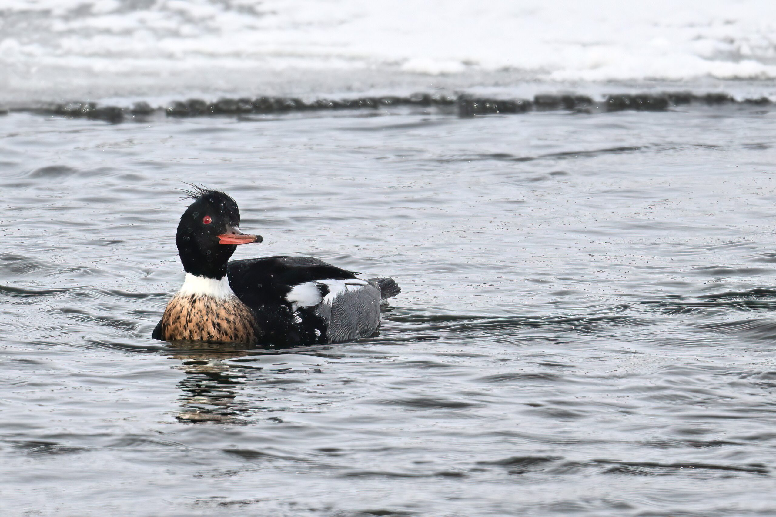 Lesser ScaupFemale Lesser ScaupDucks landingFemale Lesser Scaup II“Duck soup” IIIFemale Lesser Scaup IIIMale Red-breasted Merganser on icePoorly lit male Common Merganser“Duck soup” IVView of South Pier looking east