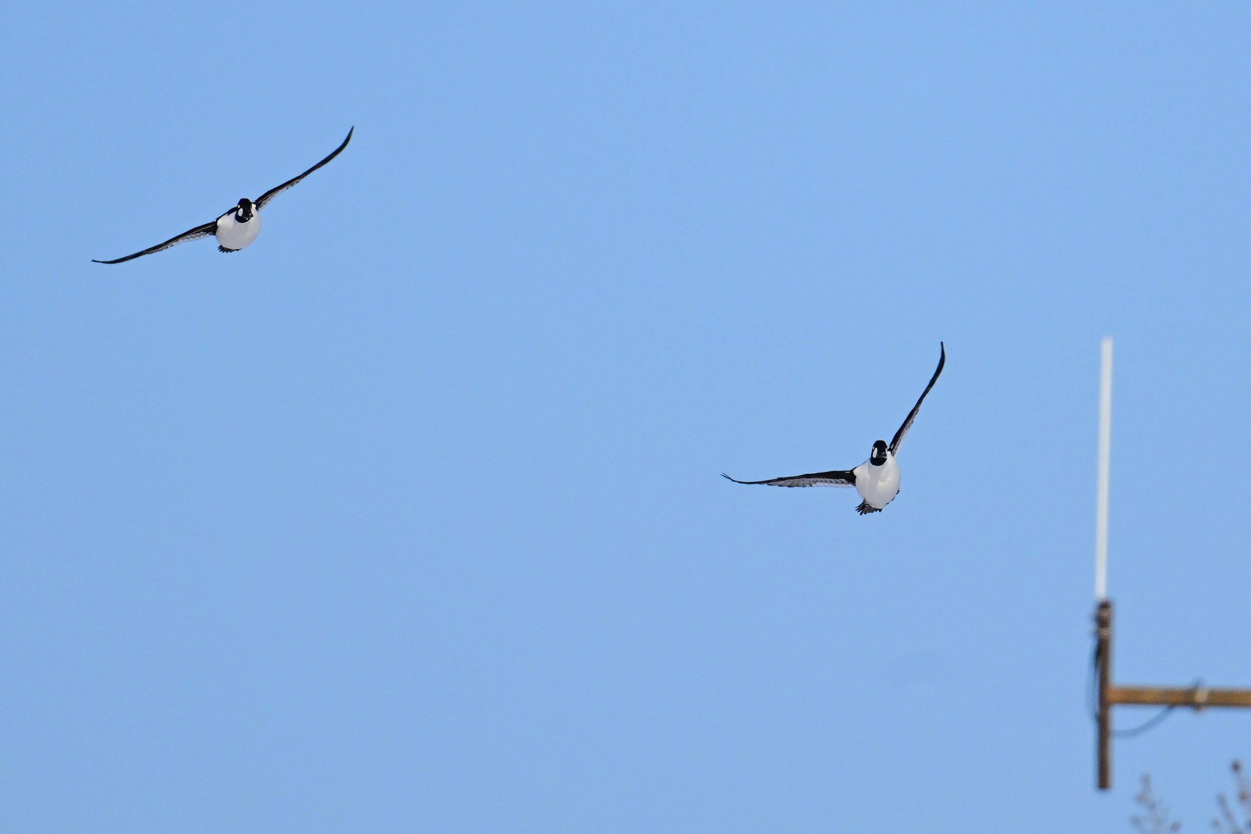 Sadly, no recent sightings of Pierce Brosnan in Erie County, Pennsylvania, but even if so, not sure that would qualify as “Other animals” for eBird. Maybe. Anyway, today’s post features a duo of male Common Goldeneye in flight over South Pier, plus the obligatory seasonal “Lake Erie frozen over” shots from this past weekend. Please enjoy responsibly.