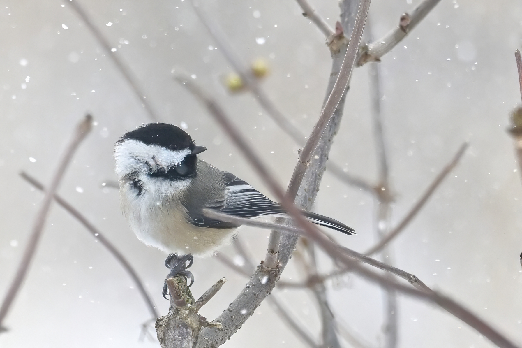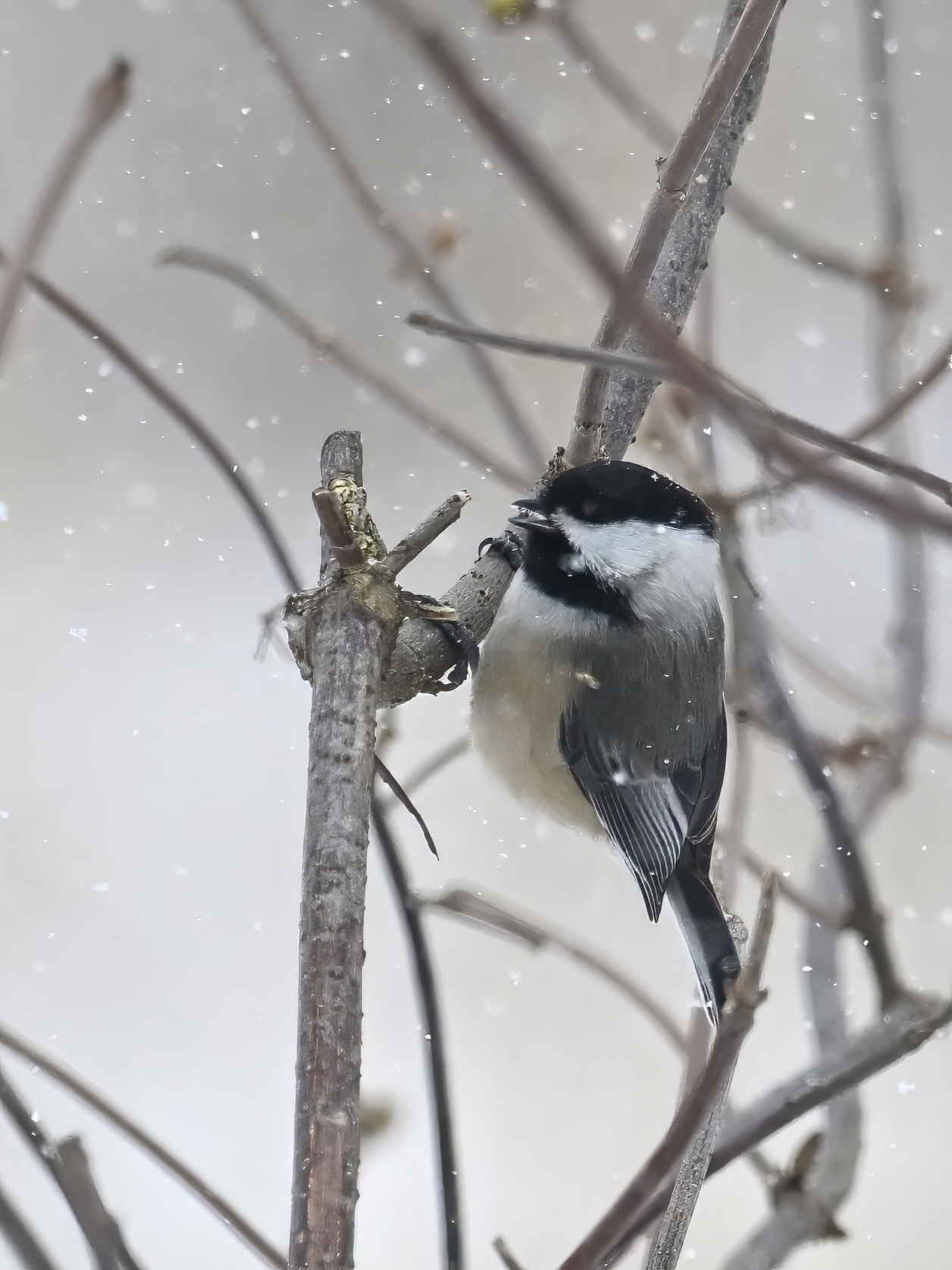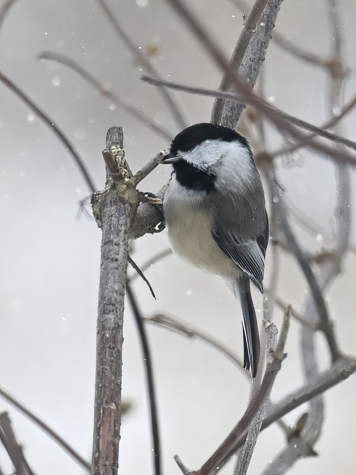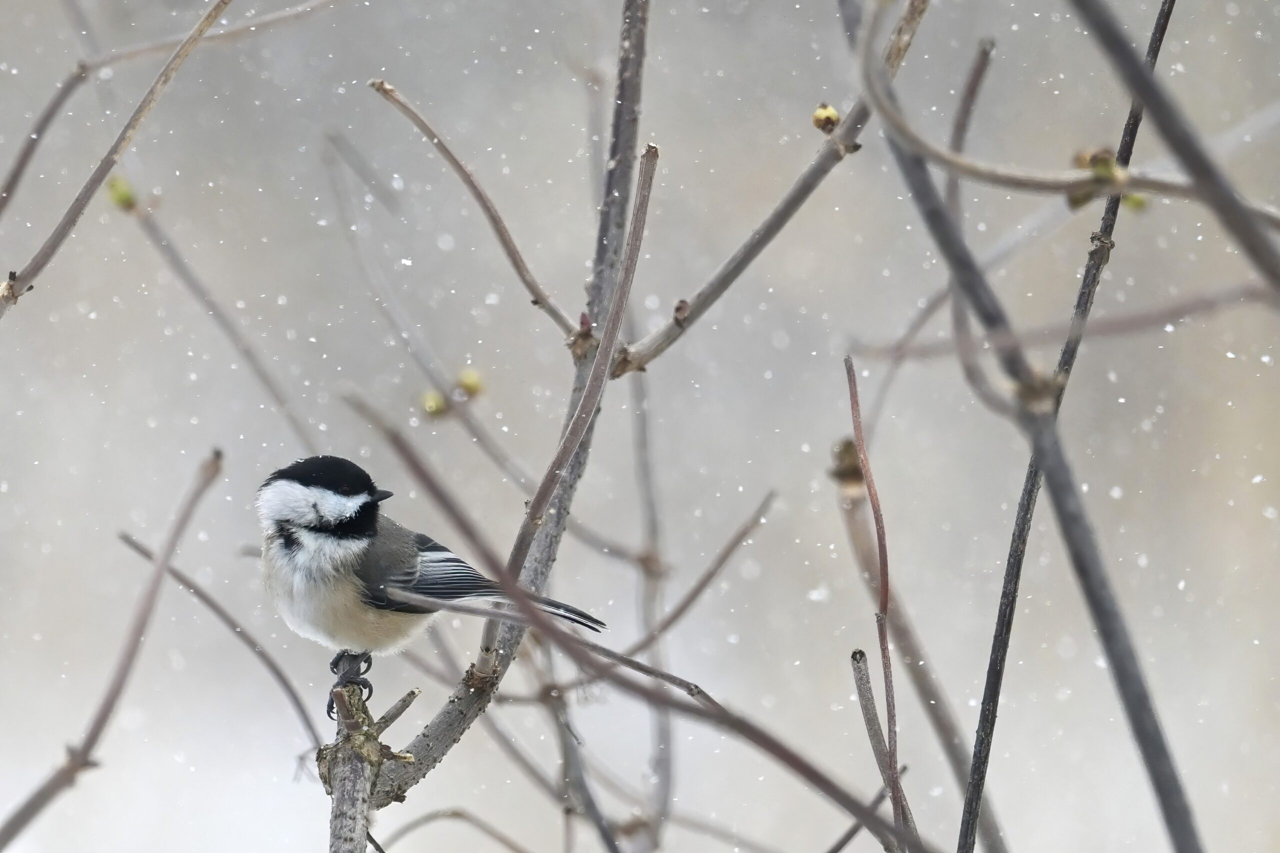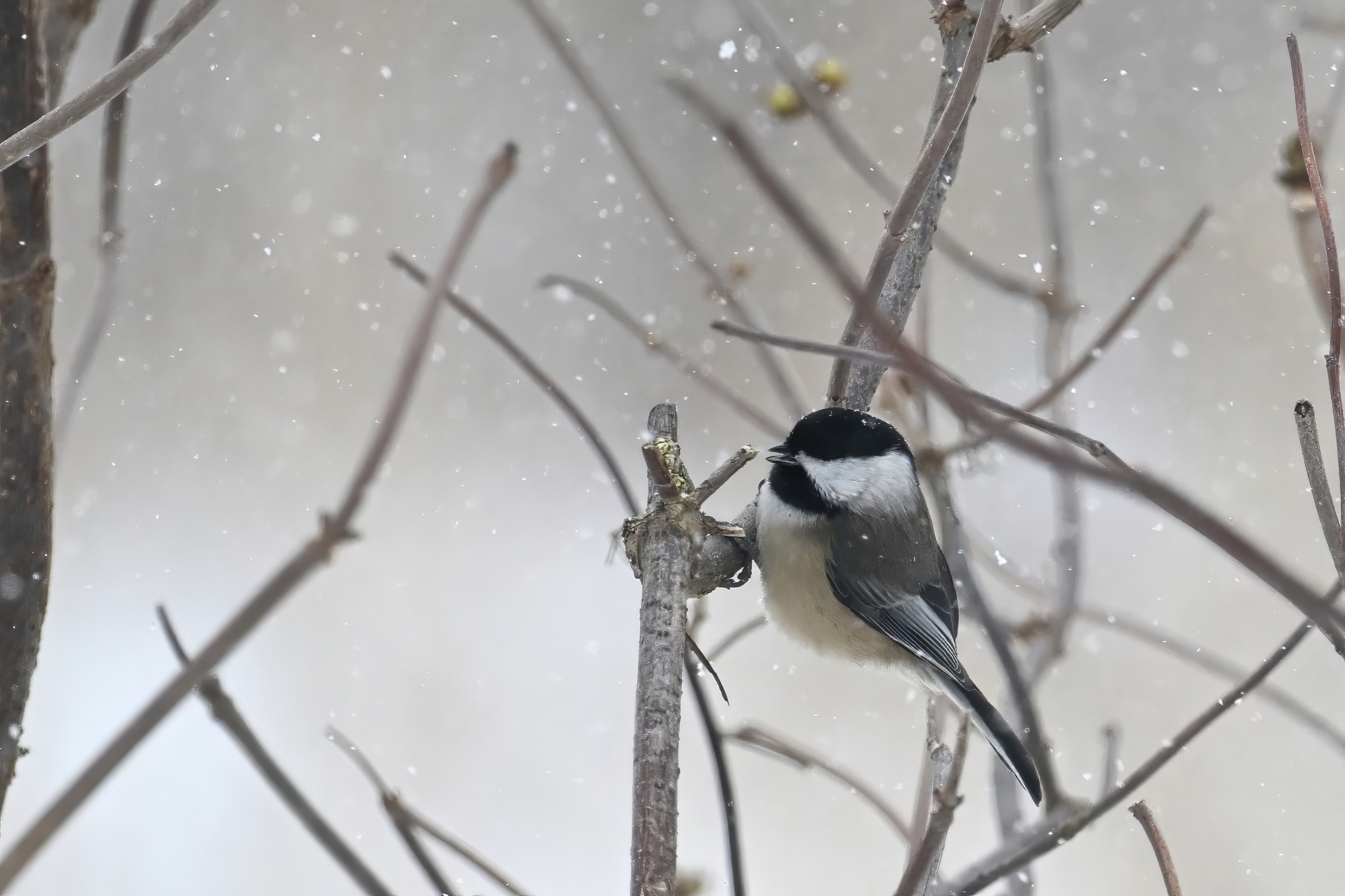 Having made it back successfully from Gull Point over the weekend, it was time to decompress with further unpleasantly cold temperatures, wind, snow, etc., all made worthwhile by fun bird sightings like this Black-capped Chickadee @ Millcreek Twp (“Since 1800”):