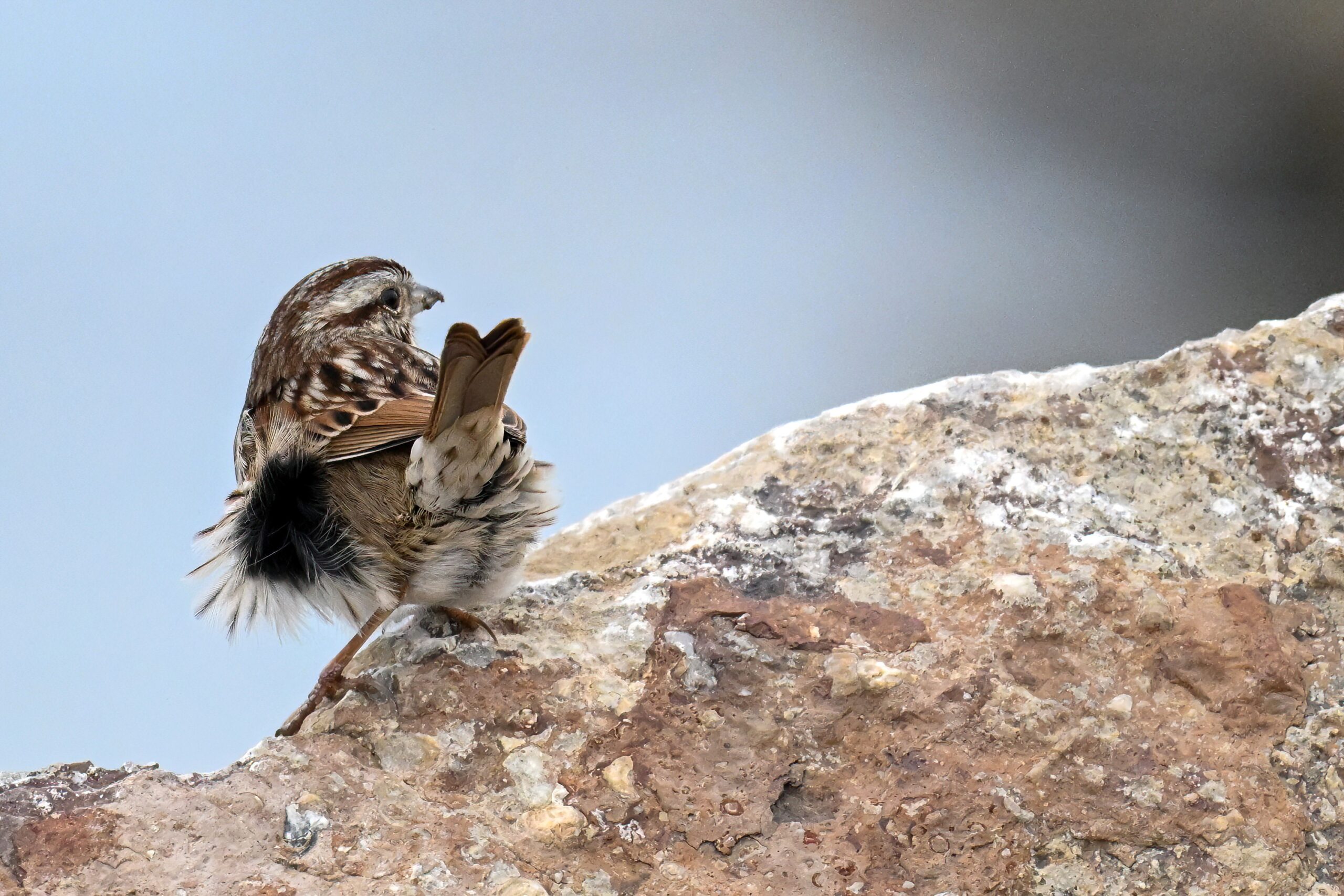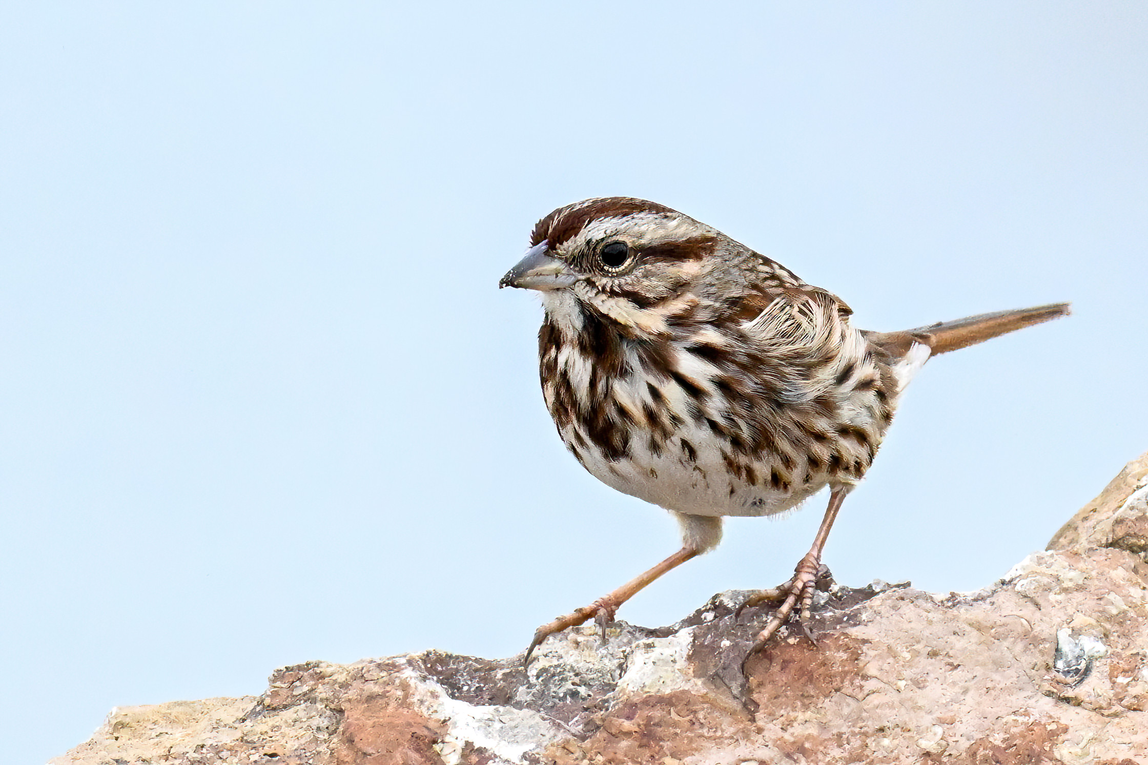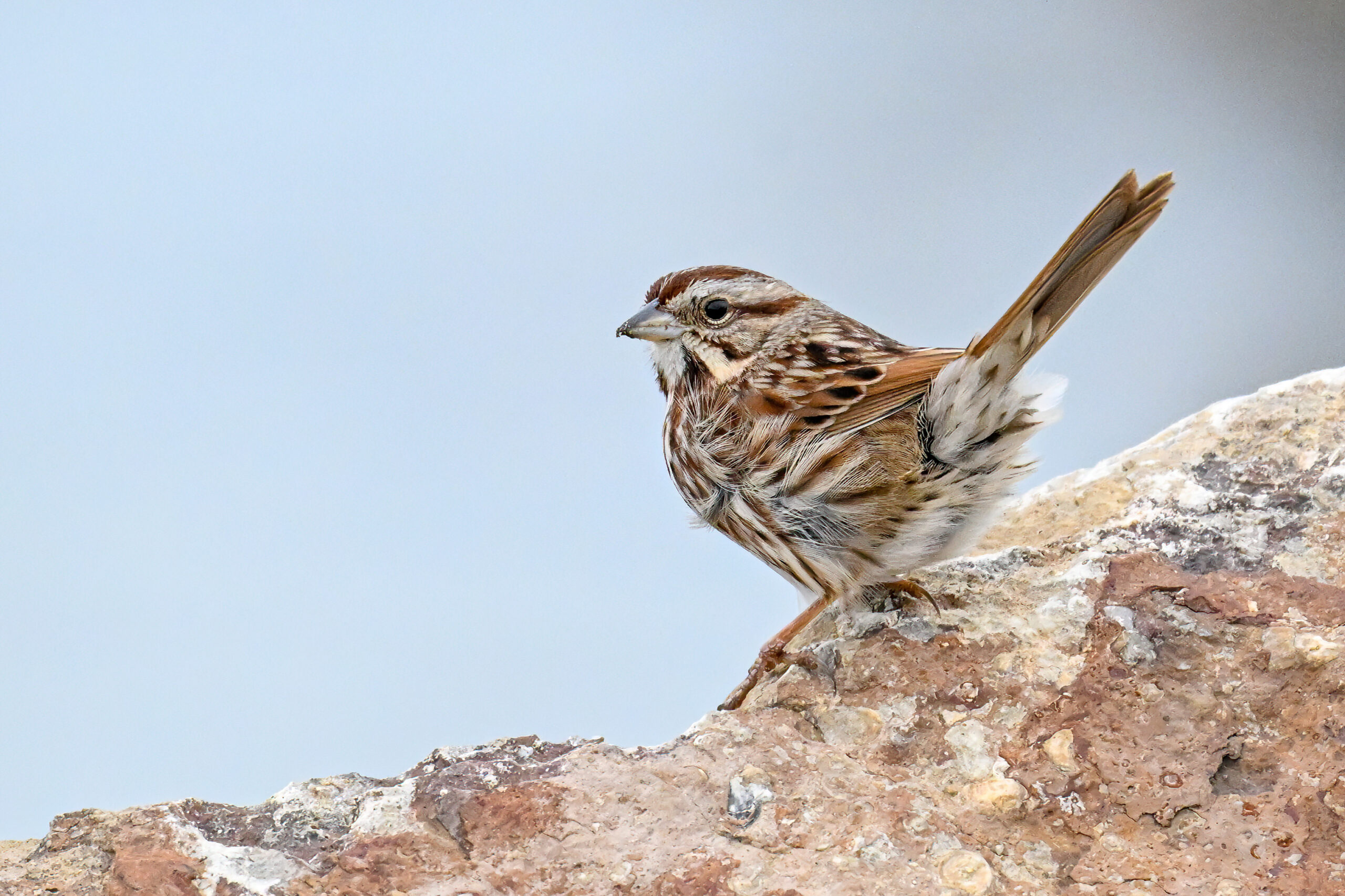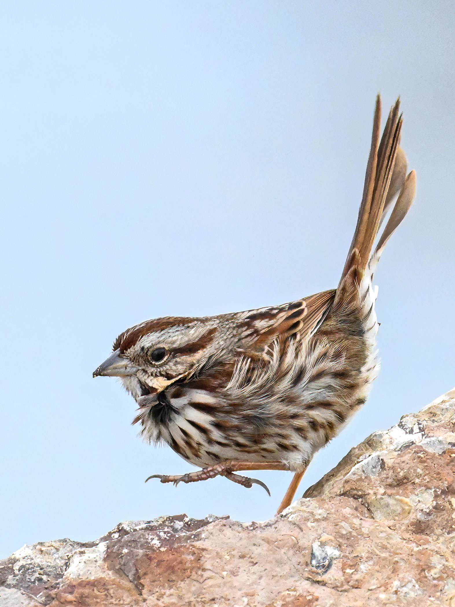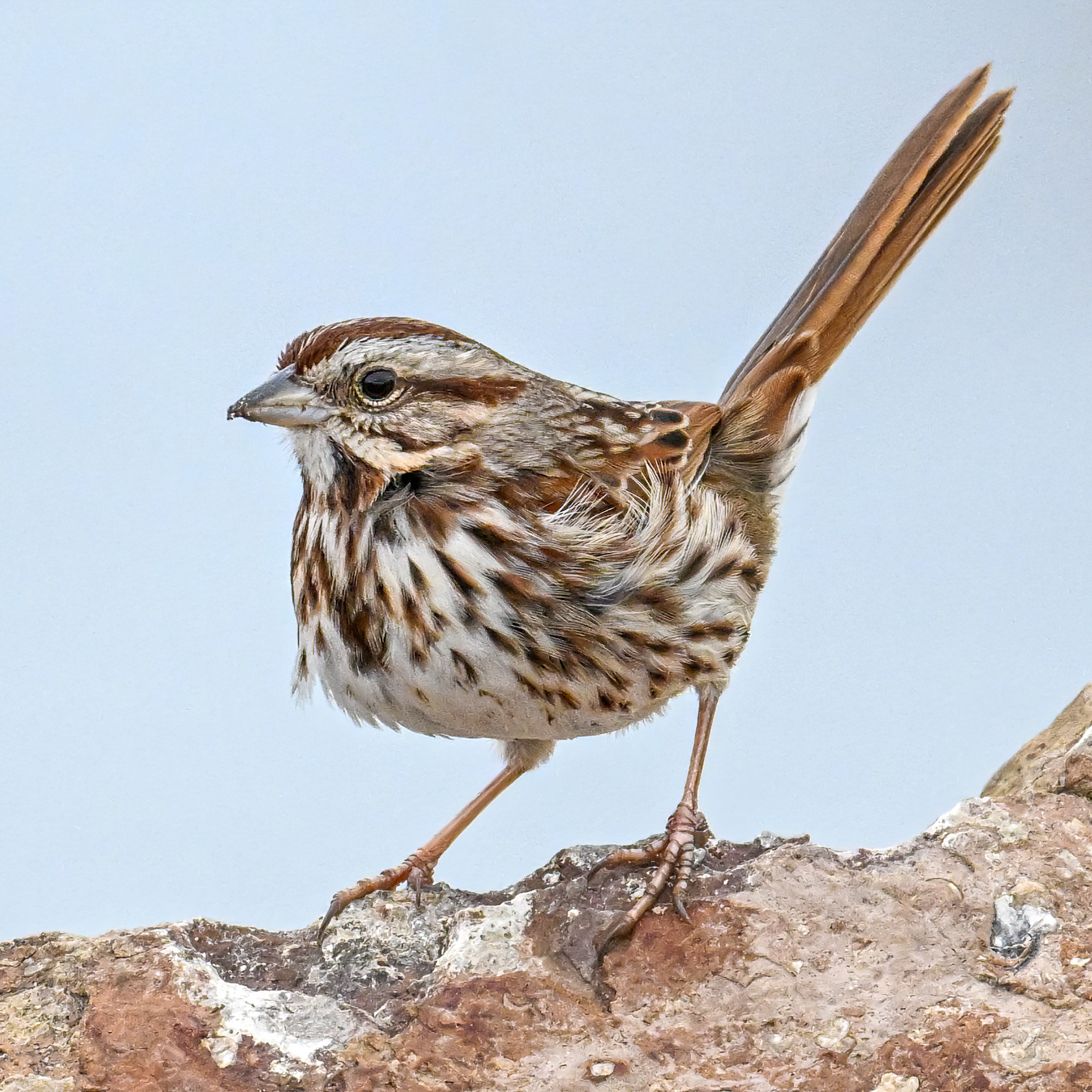 In today’s post, digital photographs from a few days ago at East Ave Boat Launch (Erie, Pennsylvania), featuring the first decent sighting this year of beautiful Song Sparrow on the boat launch breakwater: