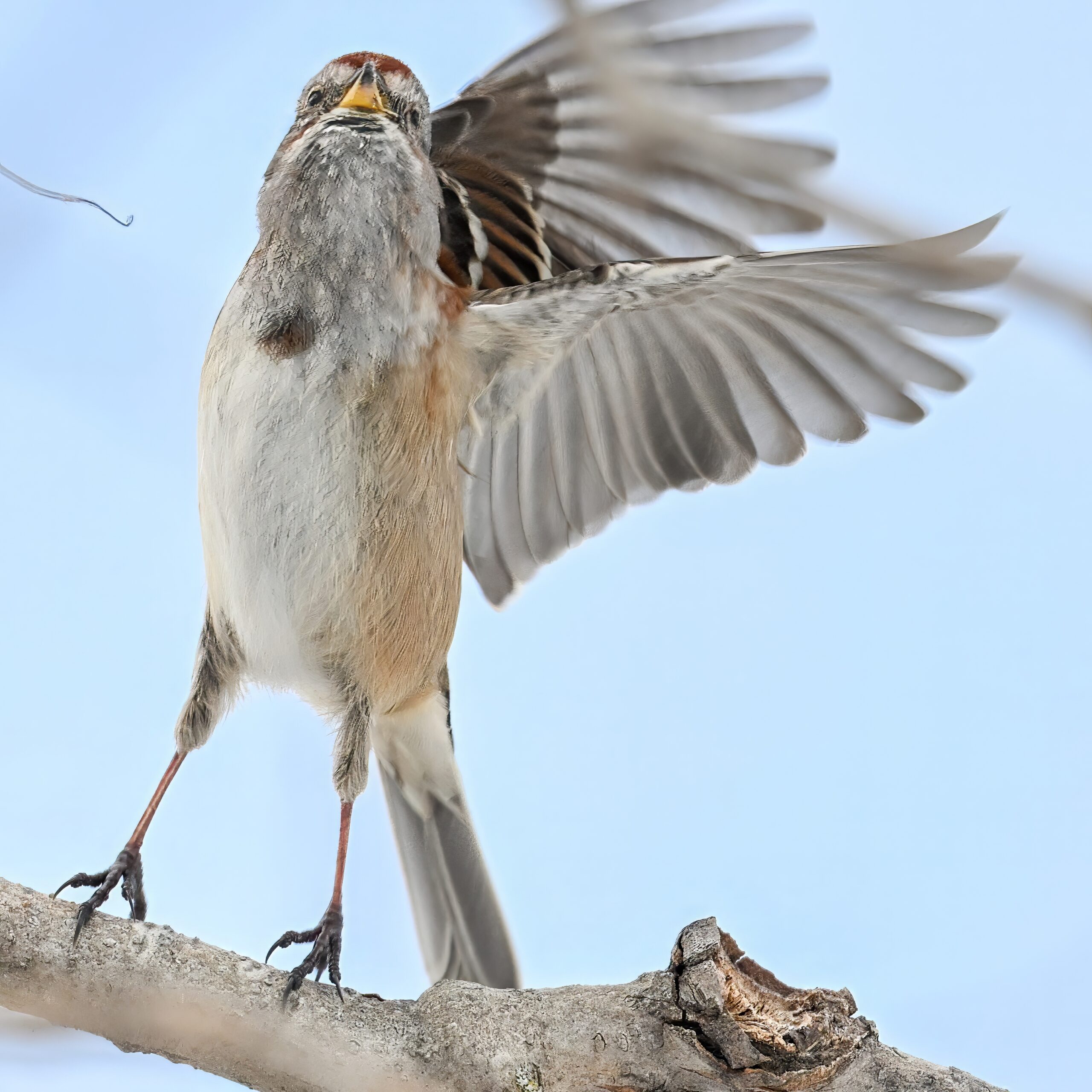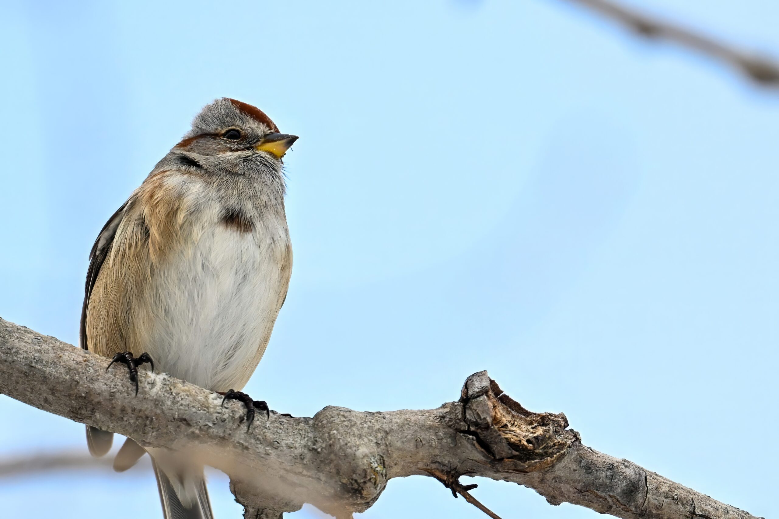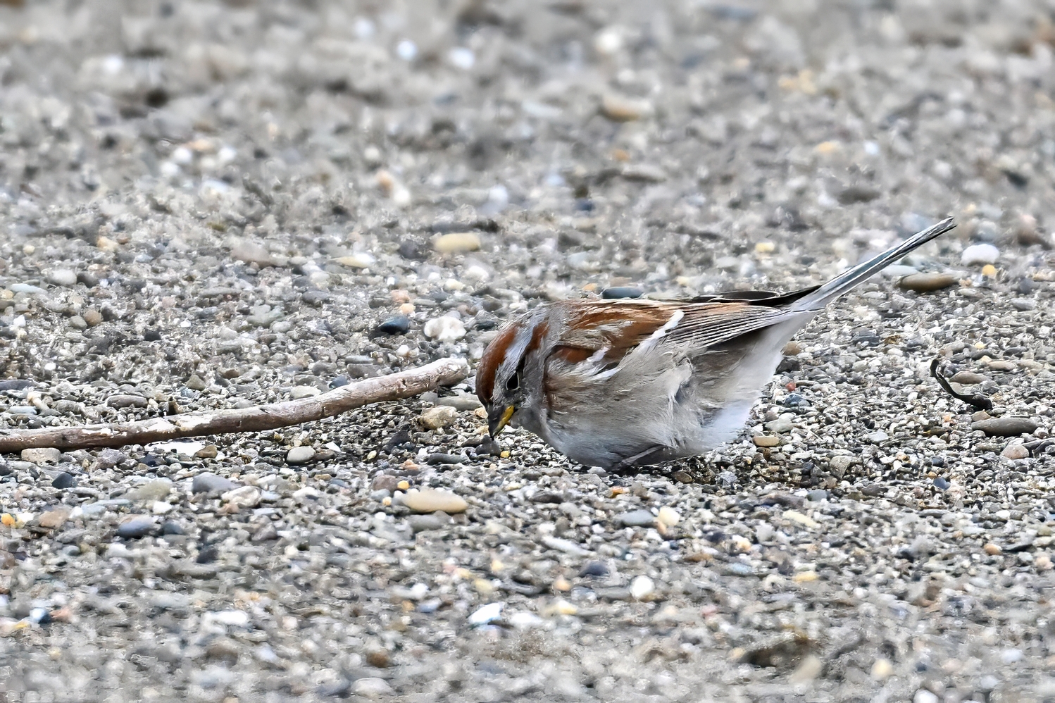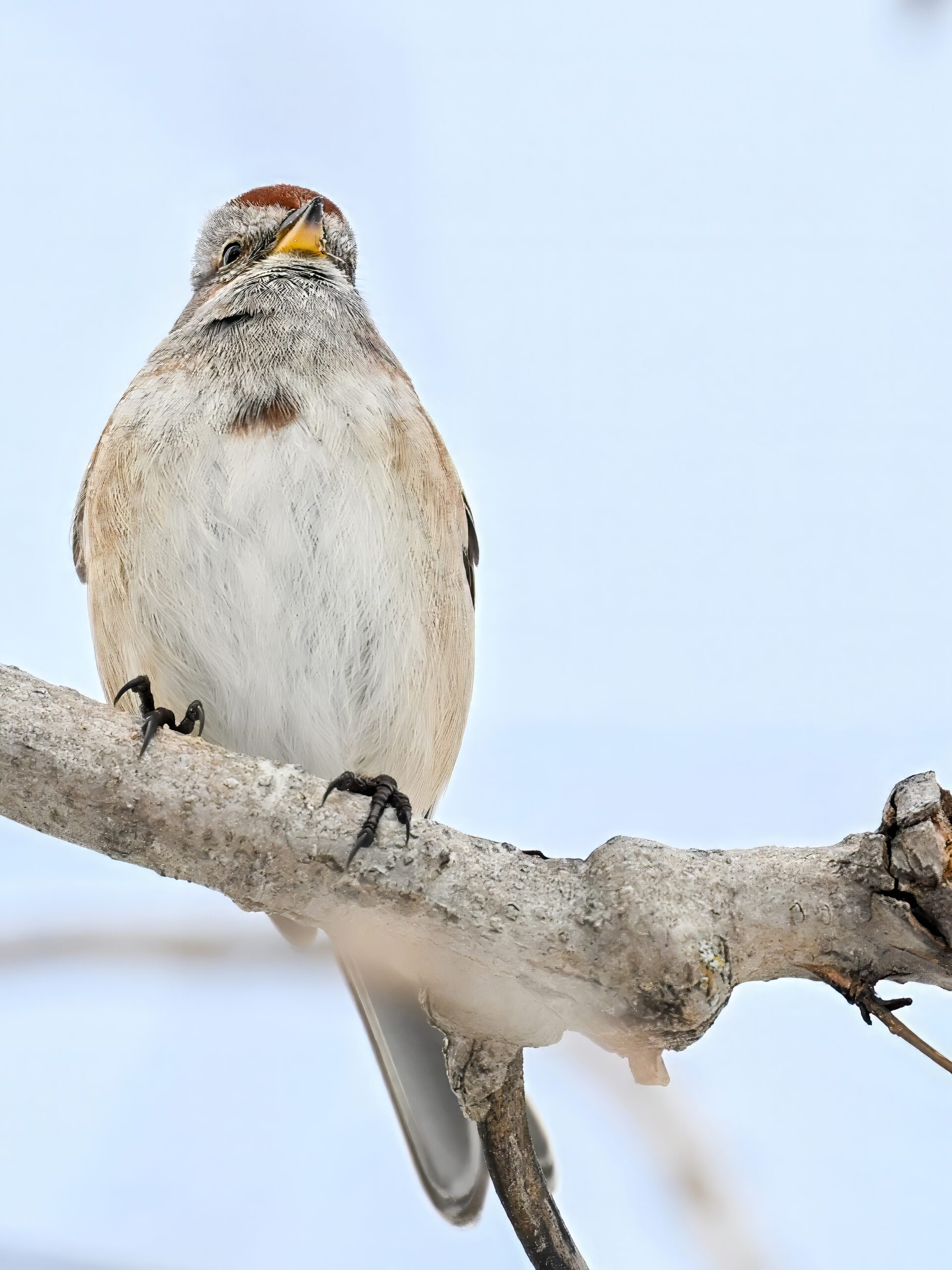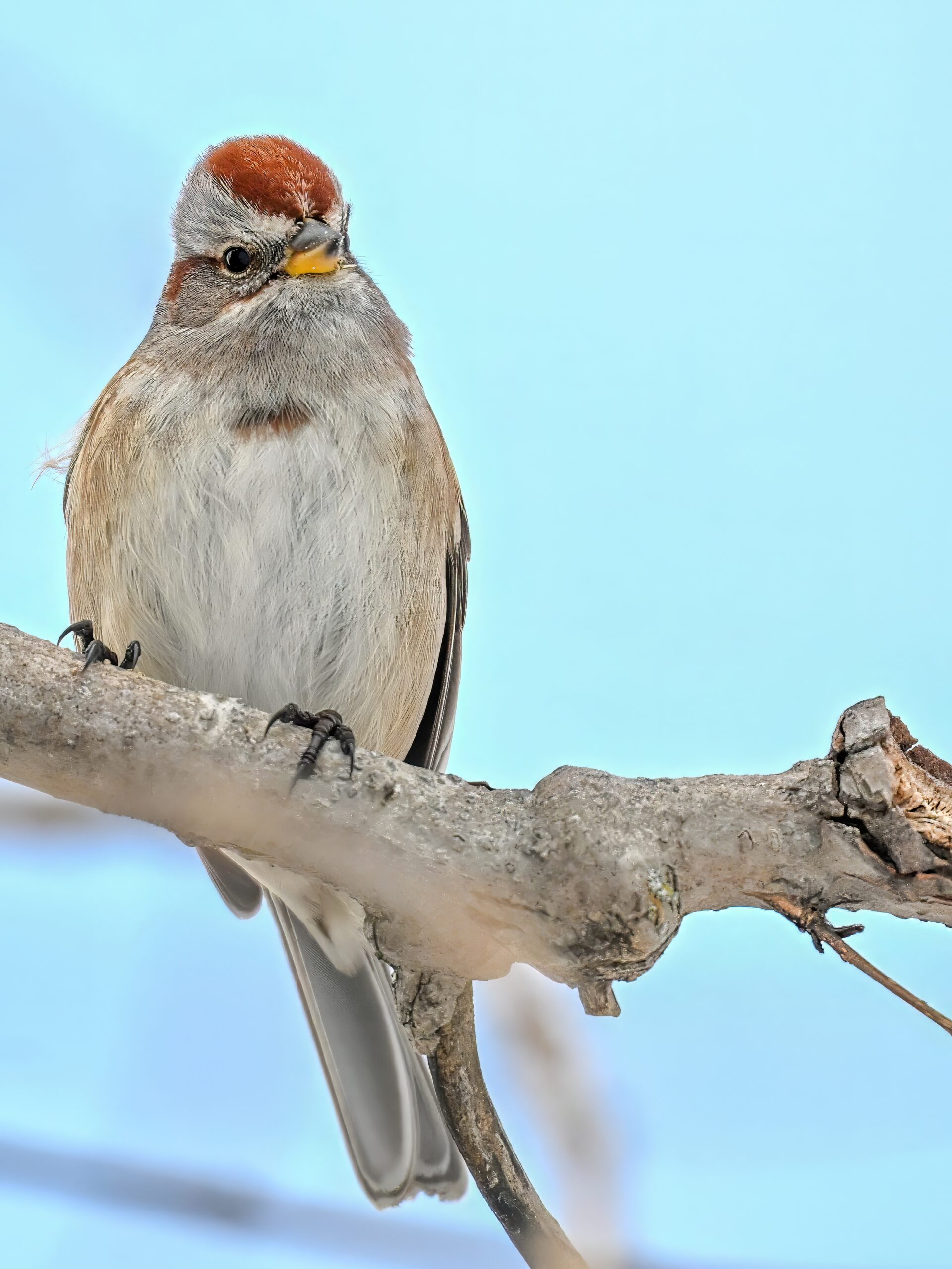 Lots of snow in Erie County, Pennsylvania yesterday. Lots and lot of snow. And cold. Also wind. And cold wind with snow. Maybe 30+ cm (12+ inches) of fresh powder, if not more. These shots of American Tree Sparrows foraging on snow-covered phragmites (common reed) – taken under very dark/overcast conditions – from a very brief and rather ill-advised stop at South Pier: