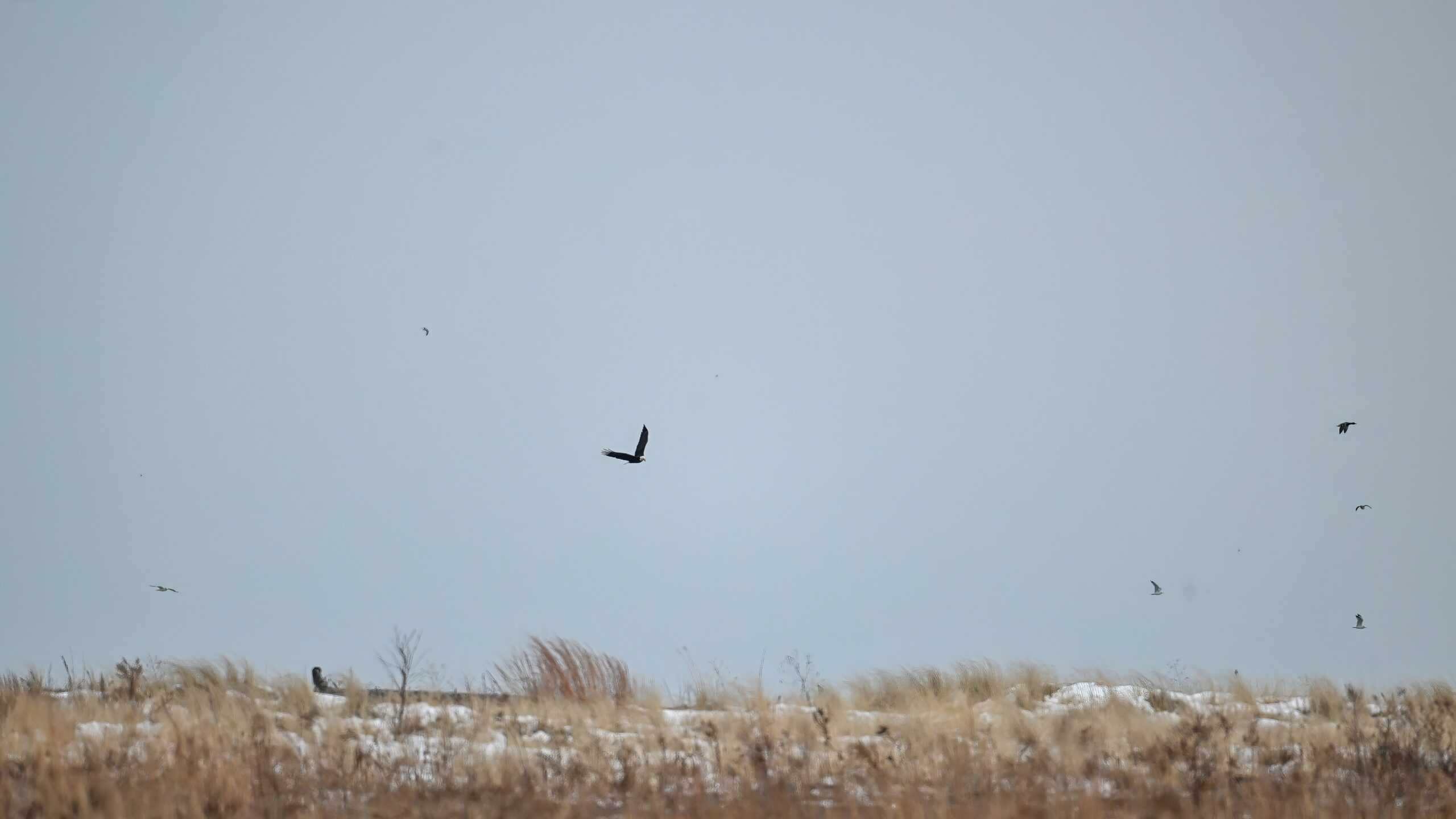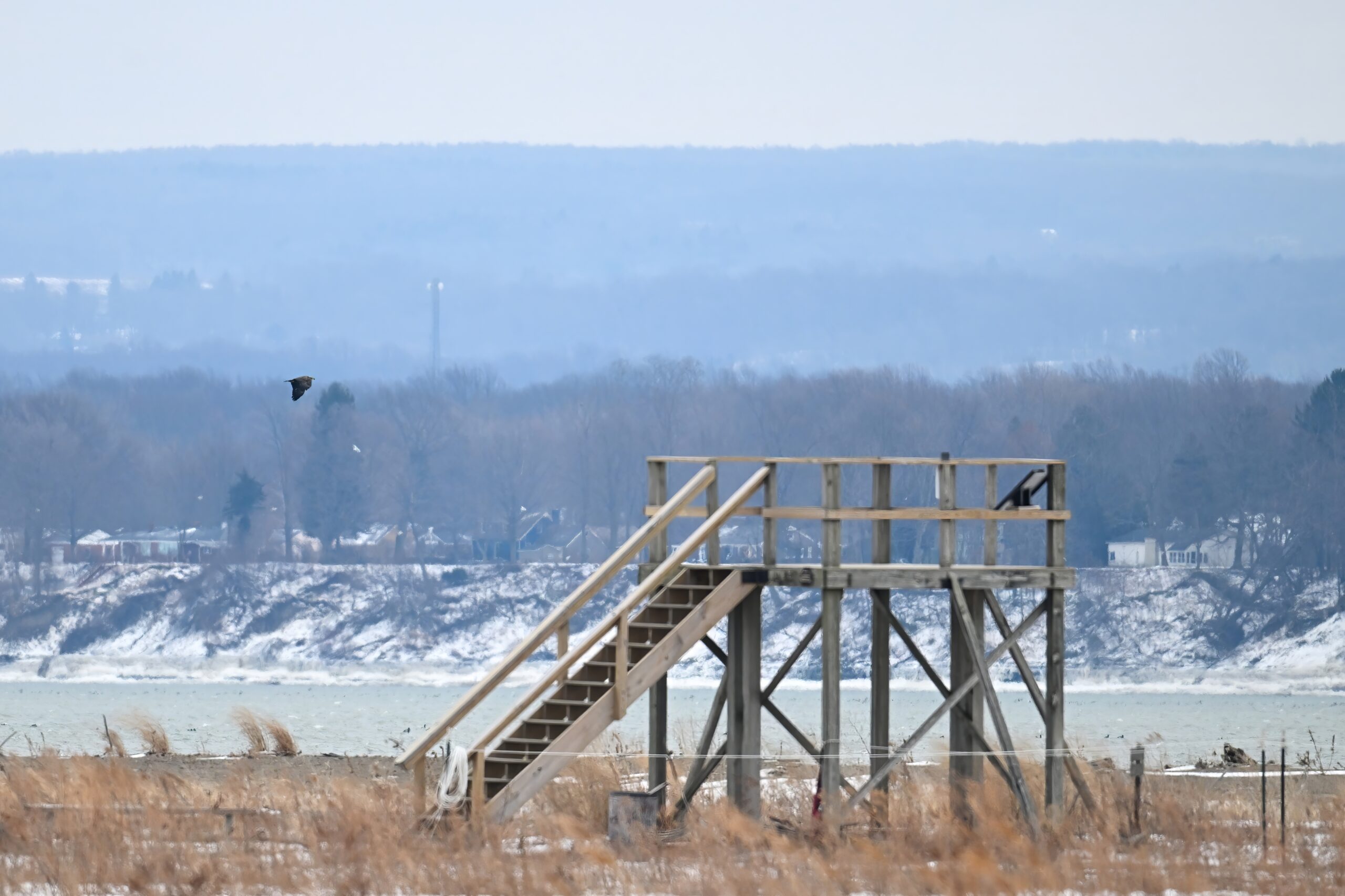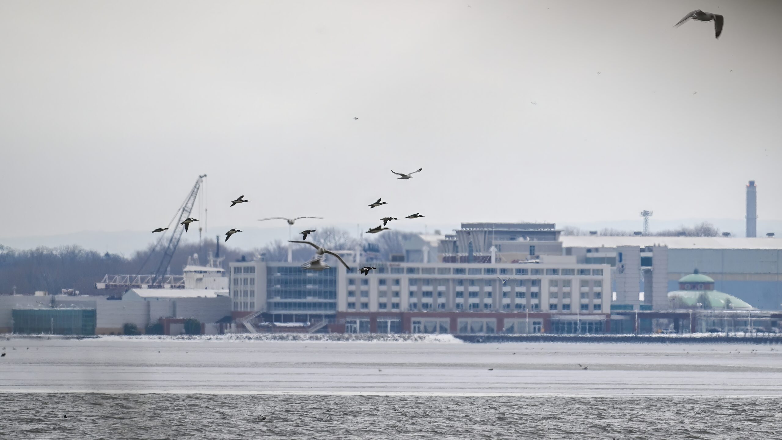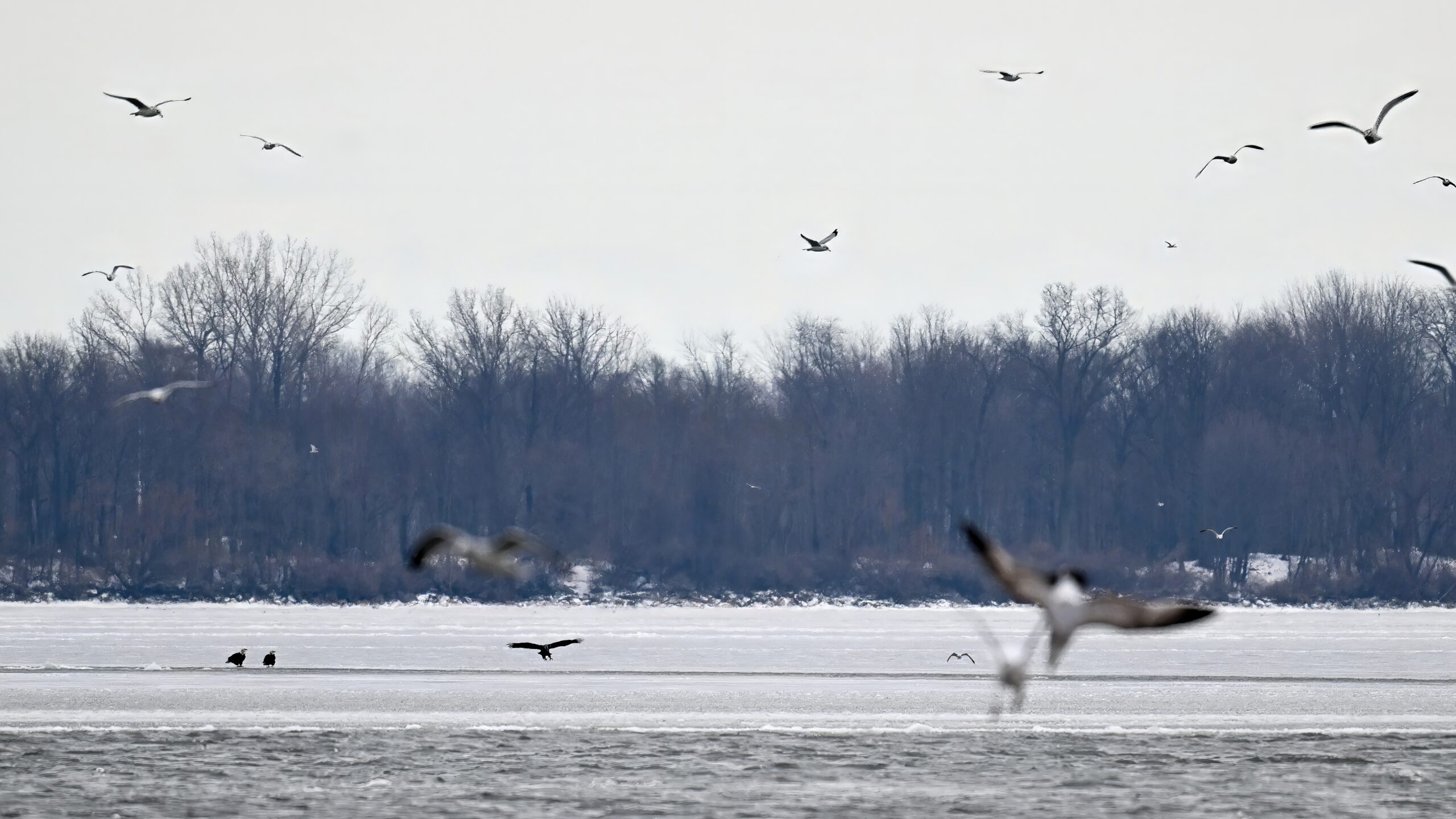 Gulls @ Leo’s LandingPoorly lit immature Bald Eagle in flightGulls & Red-breasted Merganser w/ Erie Bayfront in backgroundBald Eagle IILower left – 3 Bald Eagles on iceEagle IIISplashing gullsMore eagleGulls take flightBEIF VBald Eagles on iceFinal BEIFEastern Screech-Owl in tree near Presque Isle LighthouseView east from Budny Beach towards Gull PointIcy takeoffGull Point “inland trail”Herring Gull (1st winter plumage)Two Great Black-backed Gulls (center)View south from inner Gull Point, across outer Thompson BayFirst (Yellow-rumped) warbler of 2026!Outer Gull Point looking back towards tree lineJuvenile Bald Eagle (and gull) over Gull PointBald Eagle (juvenile) II w/ old observation platformRed-breasted MergansersAdult Bald Eagle over Gull PointAdult Eagle IIAdult Eagle IIISouthern tip of Gull Point w/ Lakeside Cemetery upper leftPeregrine FalconFalcon takes flight