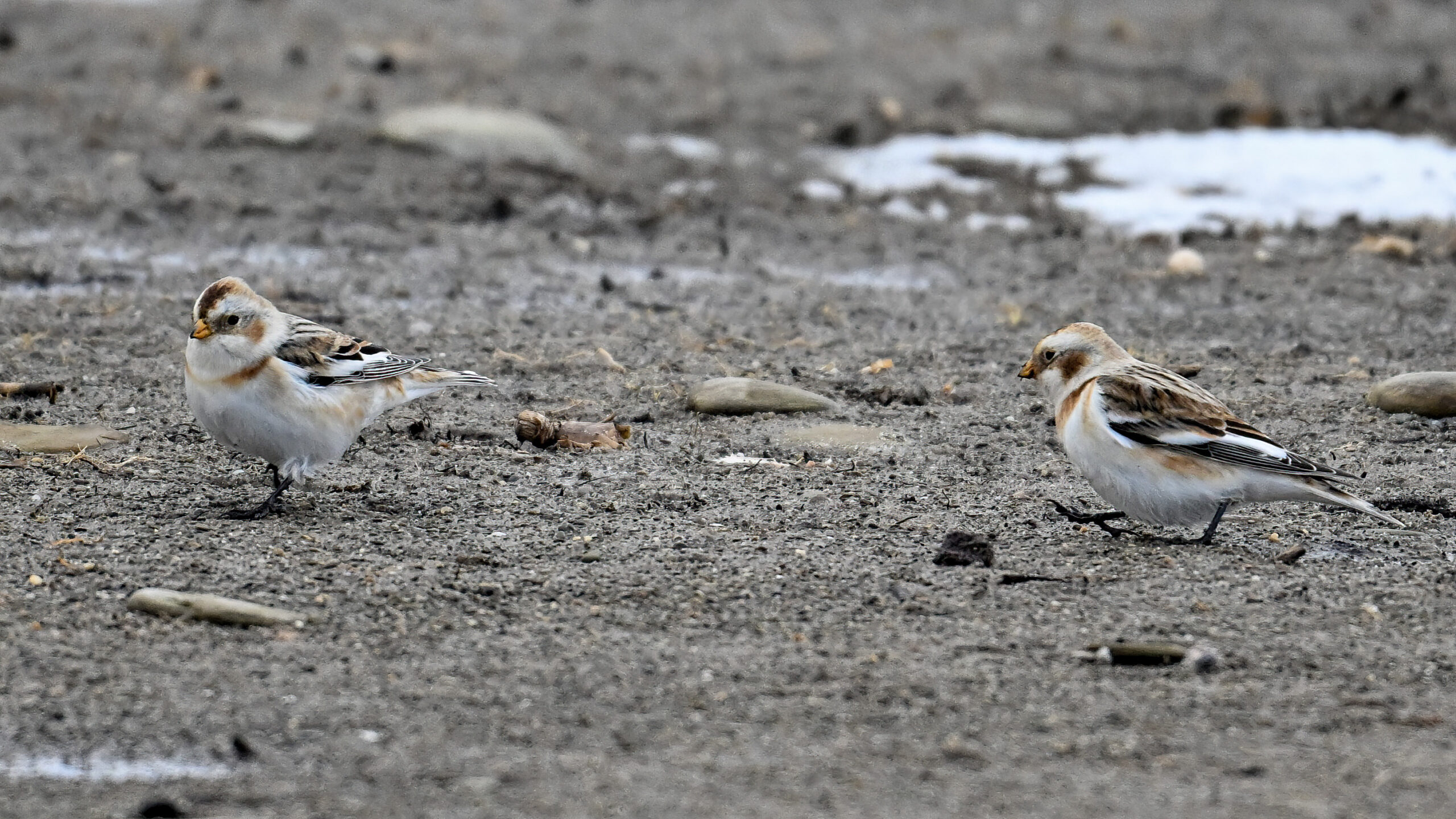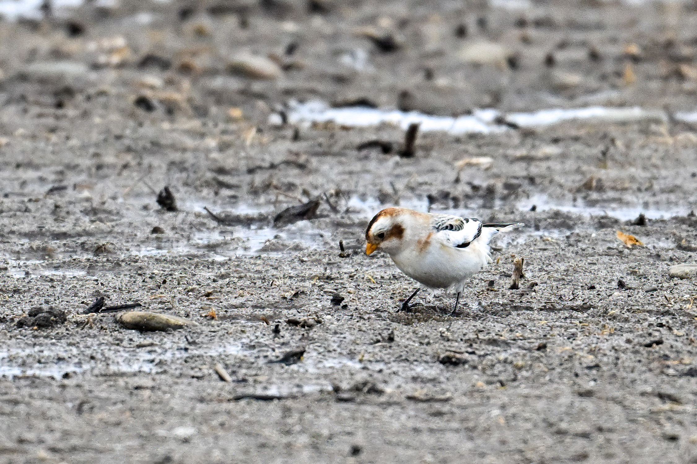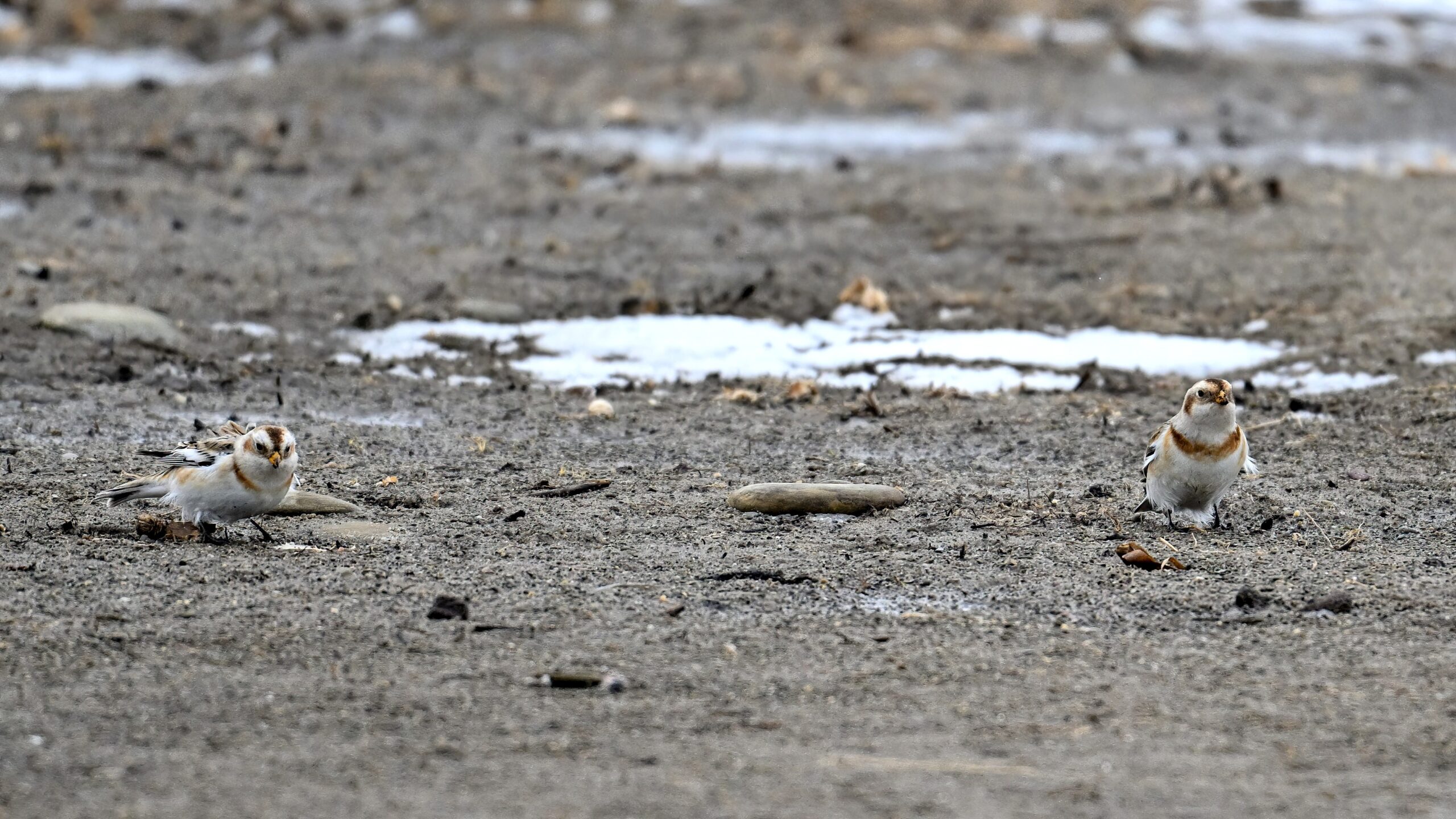 After that, it was pretty much white-out. But earlier in the day, at outer Gull Point, it was time for always fun and always cute Snow Buntings! To give curious readers a sense of how hard they are to spot on the ground: