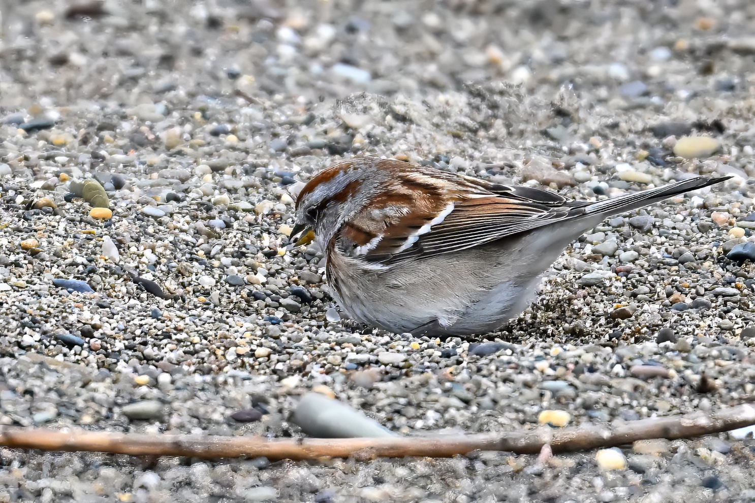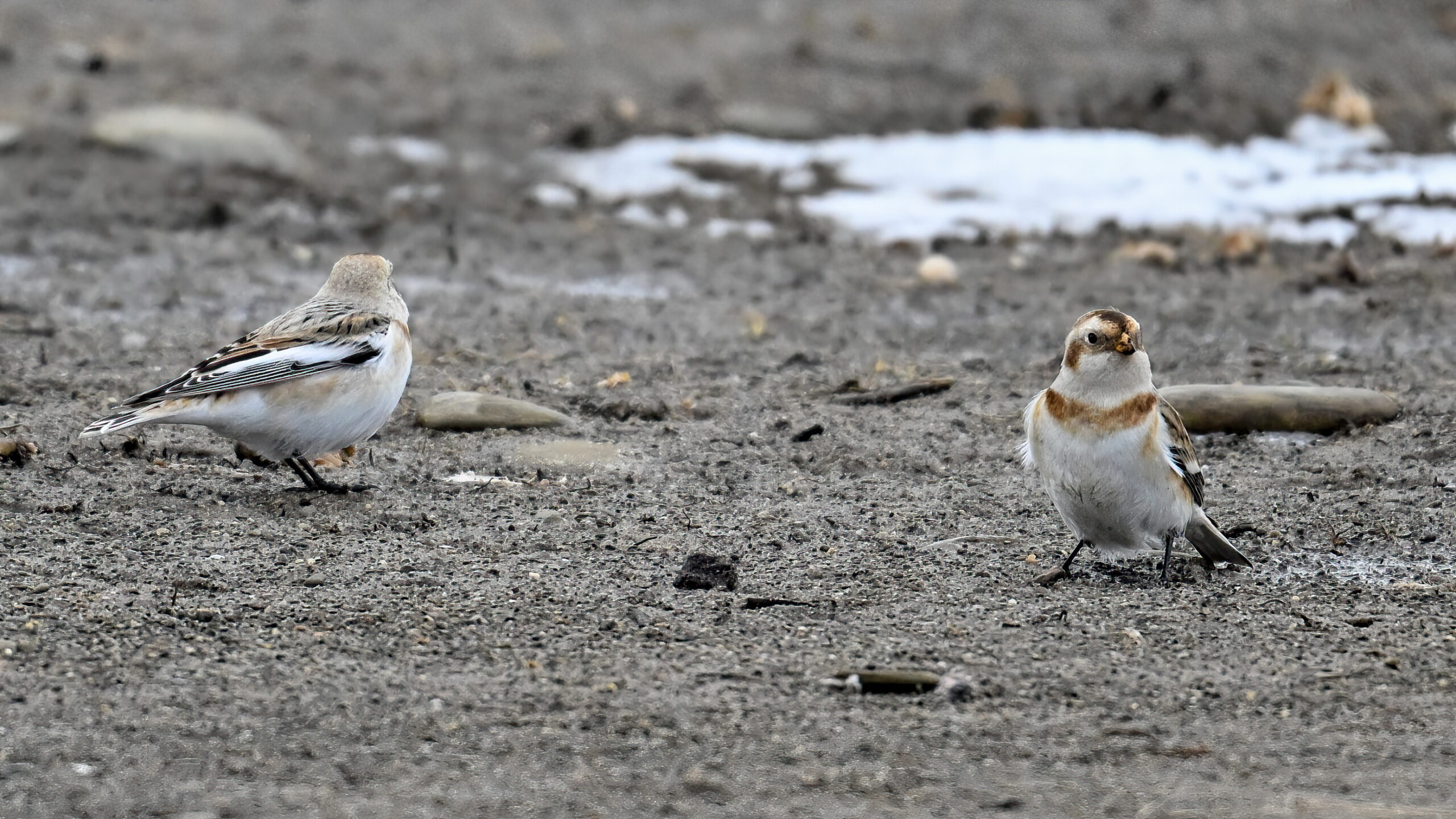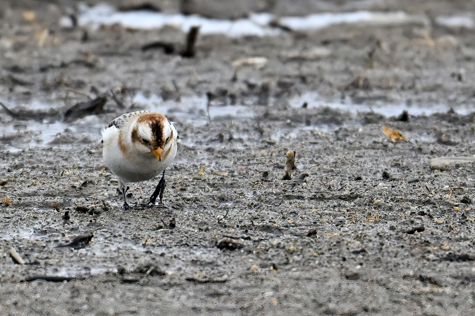 After that, it was pretty much white-out. But earlier in the day, at outer Gull Point, it was time for always fun and always cute Snow Buntings! To give curious readers a sense of how hard they are to spot on the ground: