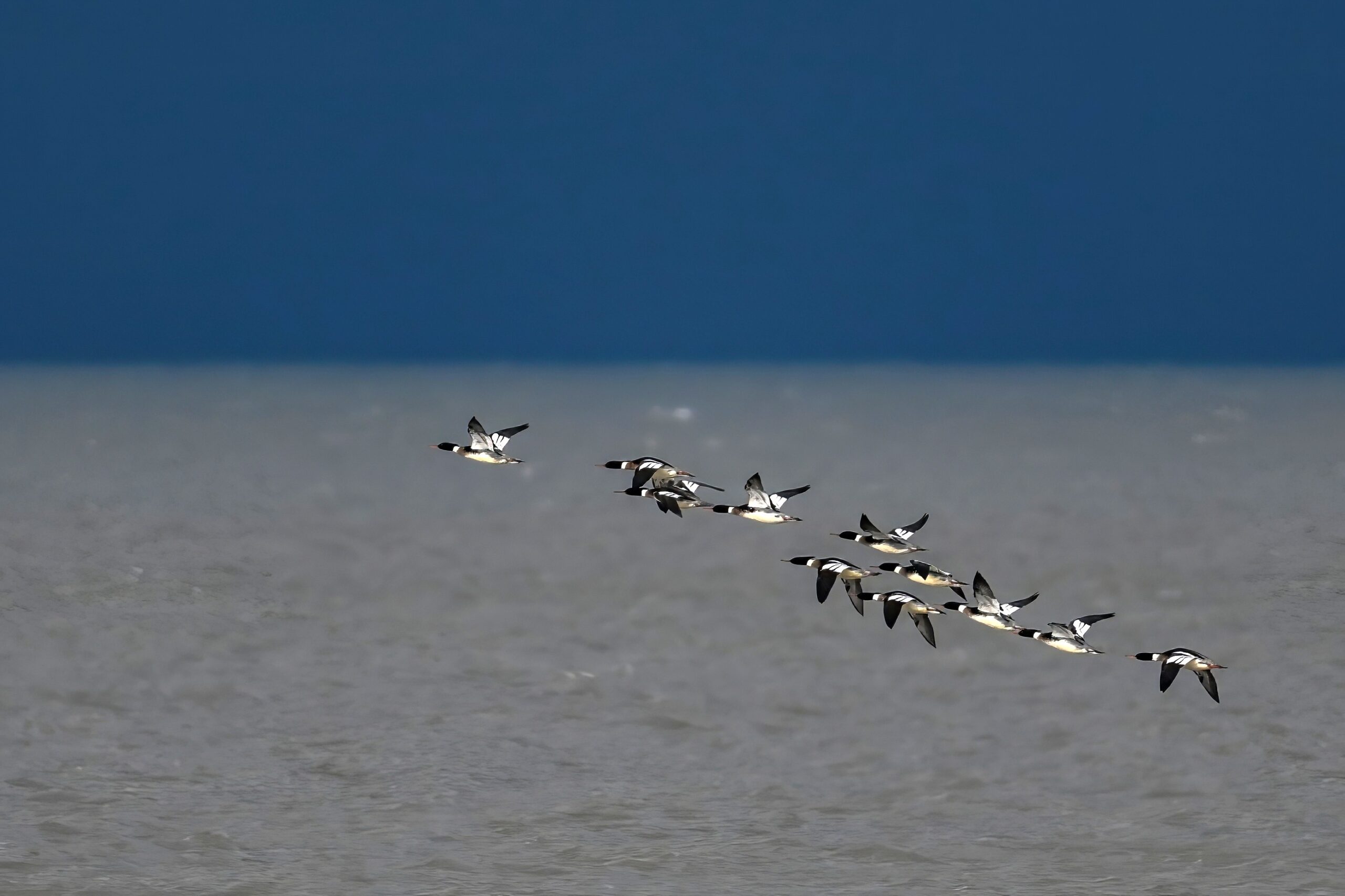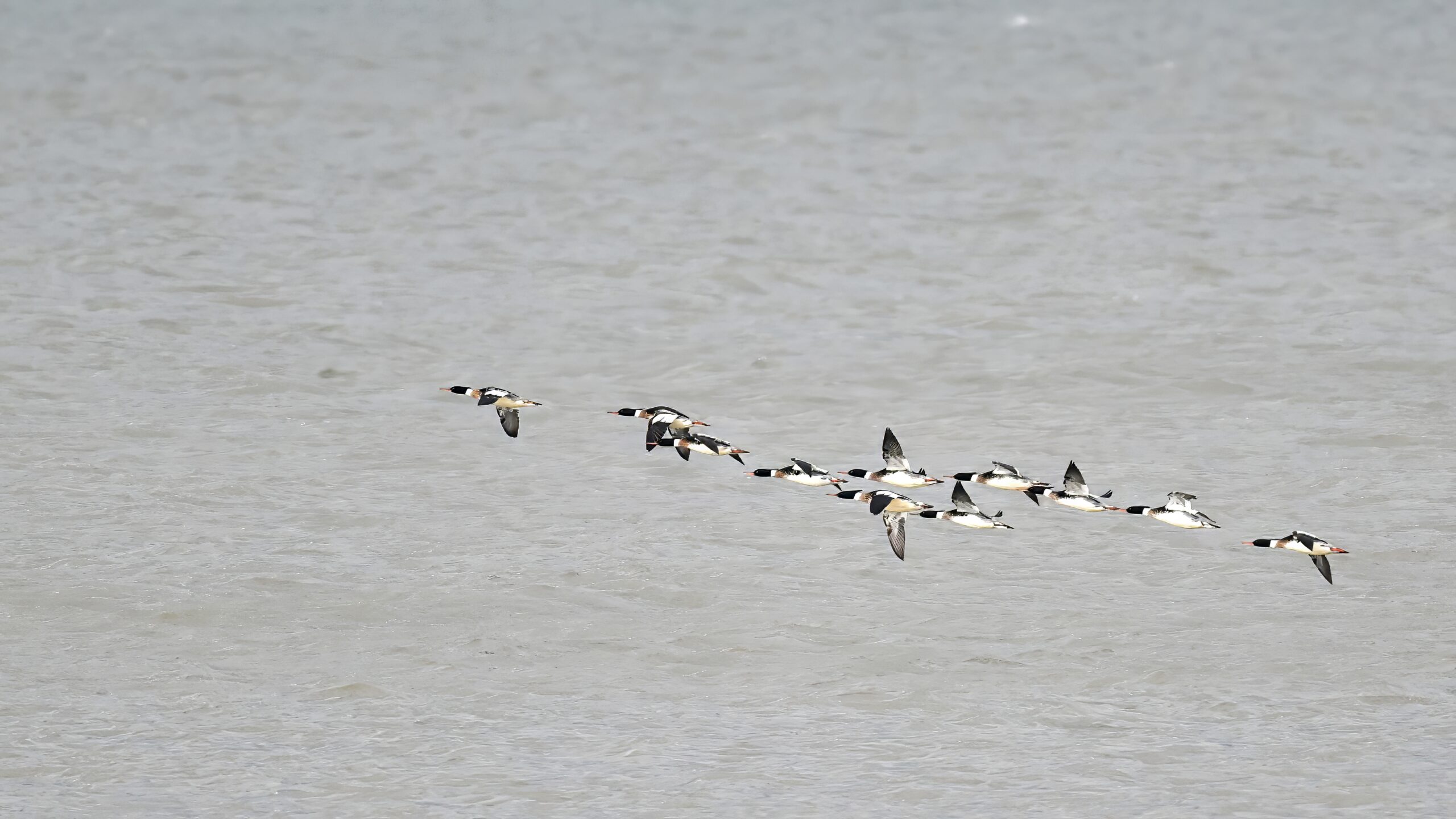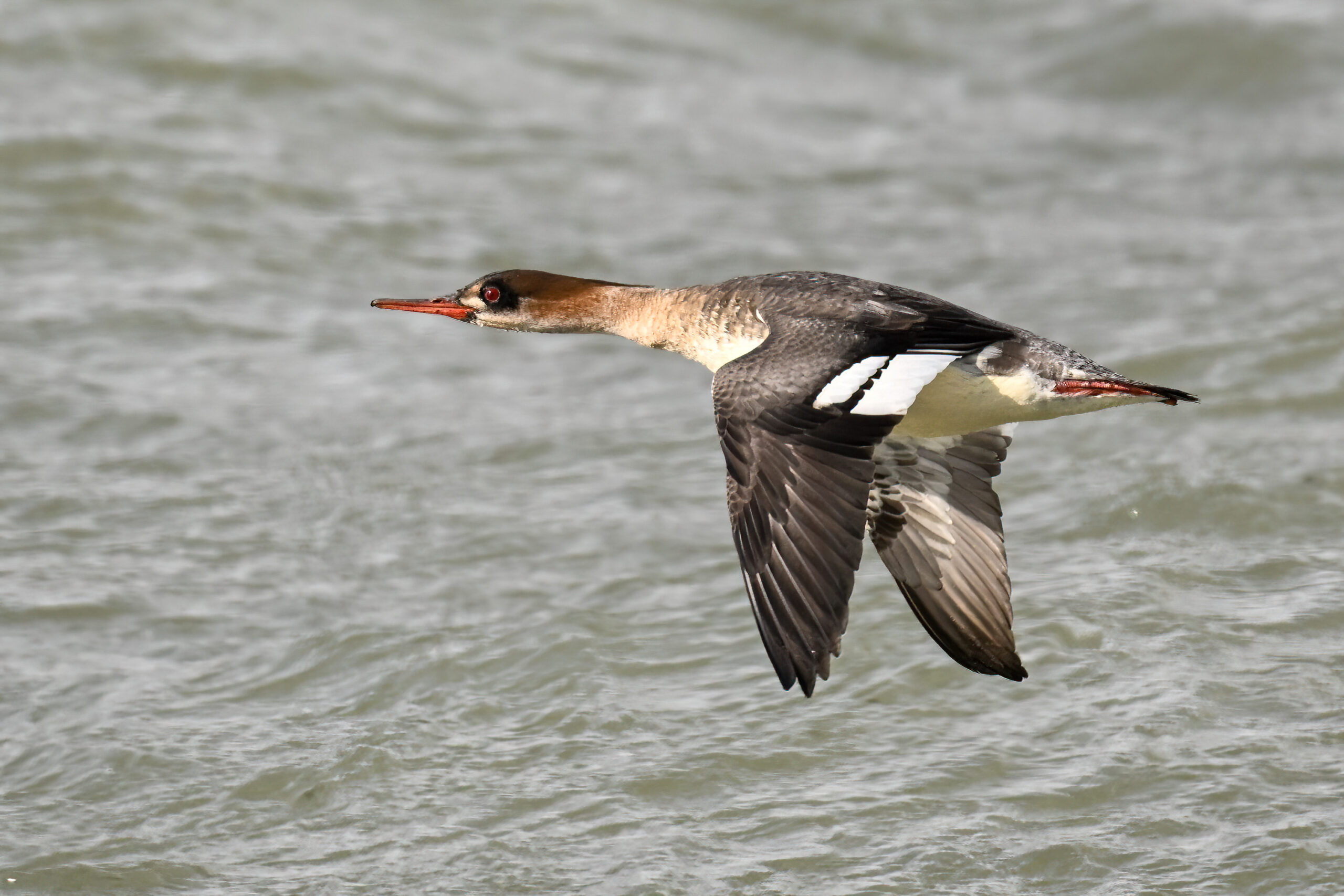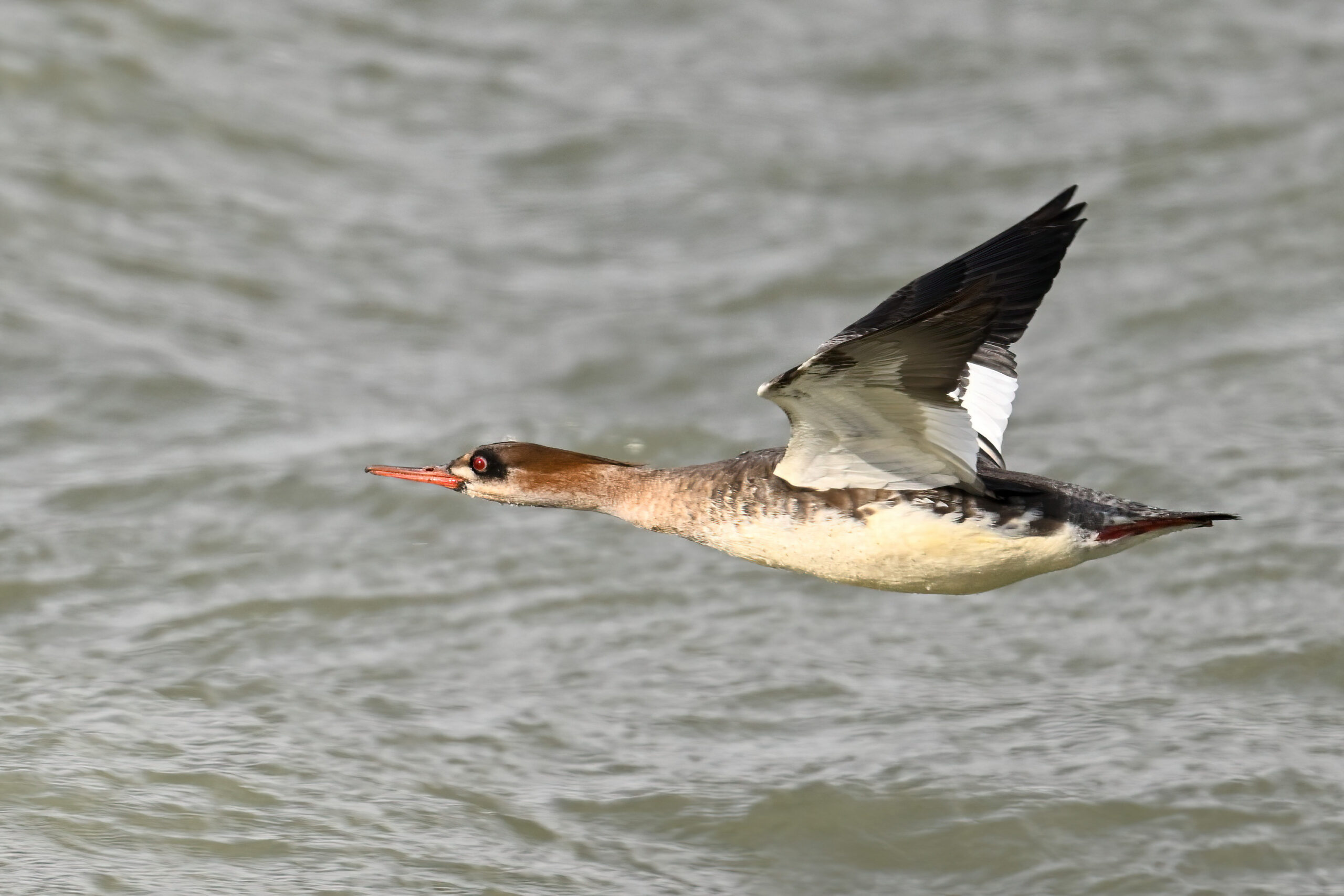 Finally, close to Budny Beach, a sequence of front-lit Red-breasted Merganser w/ dark sky (approaching snow squalls) background: