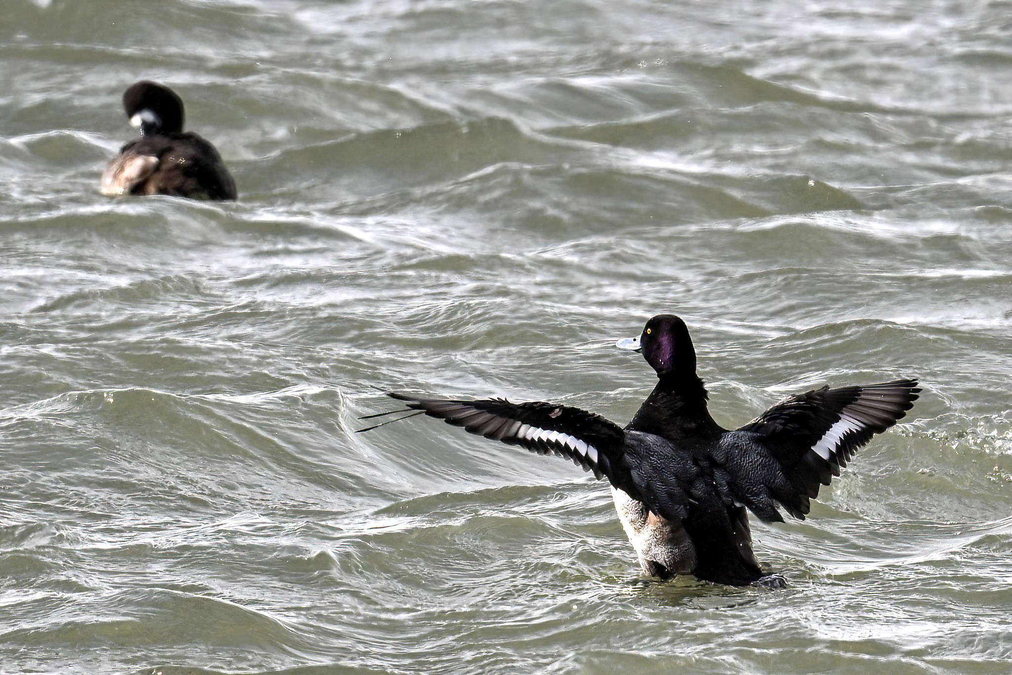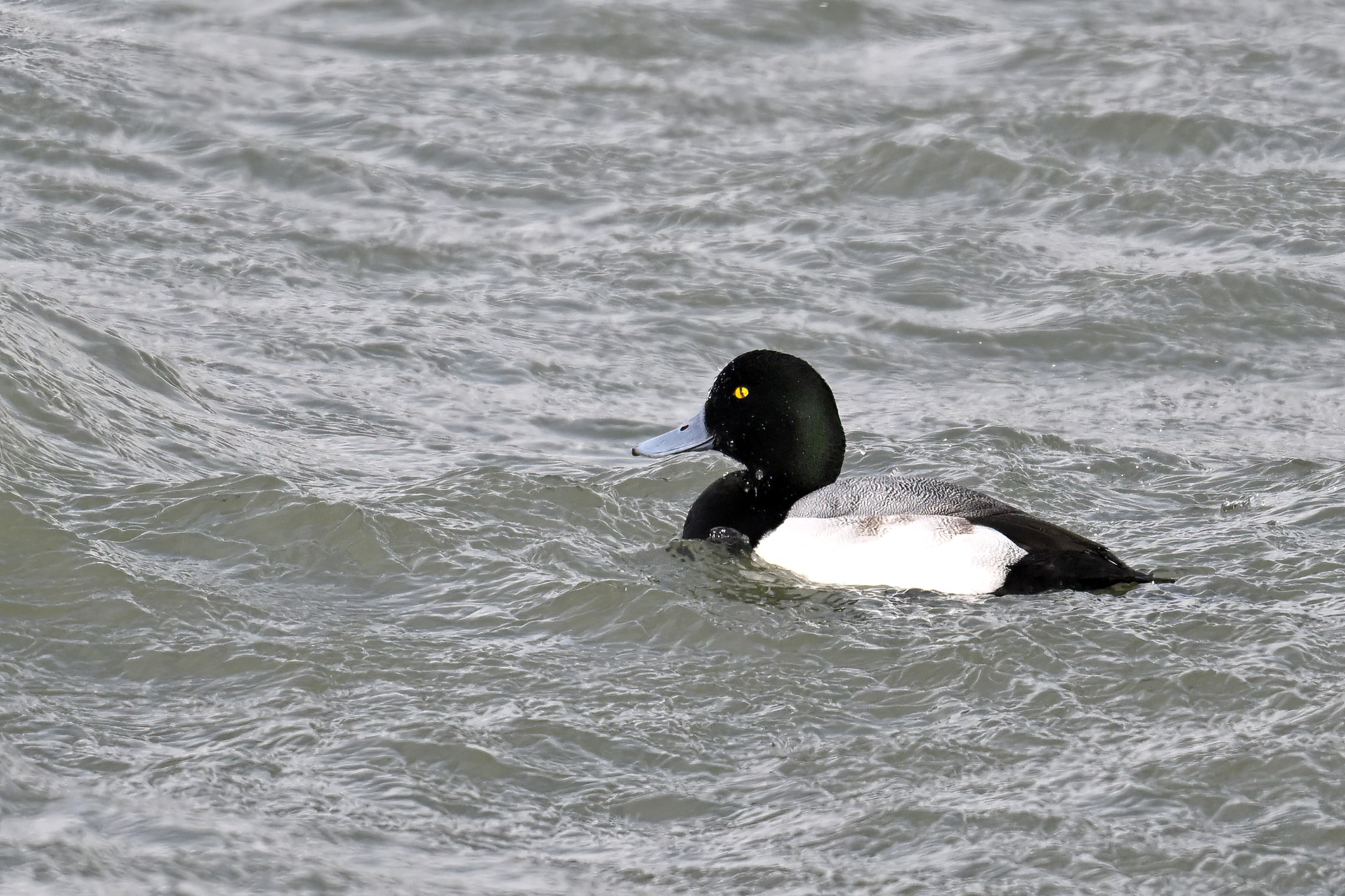 Here’s a nice shot of male Lesser Scaup. Note the 1/2 white wing stripes and iridescent purple head (typically visible only in good lighting):