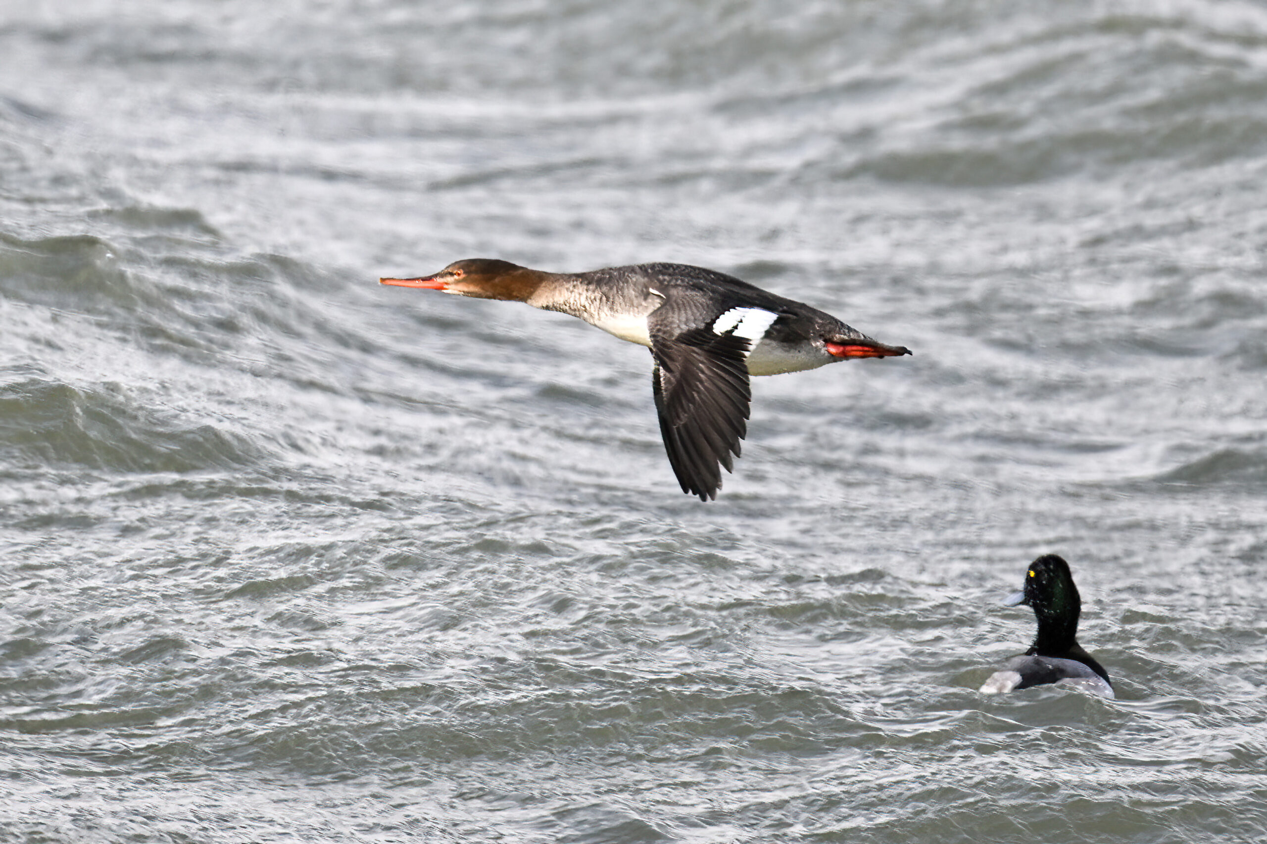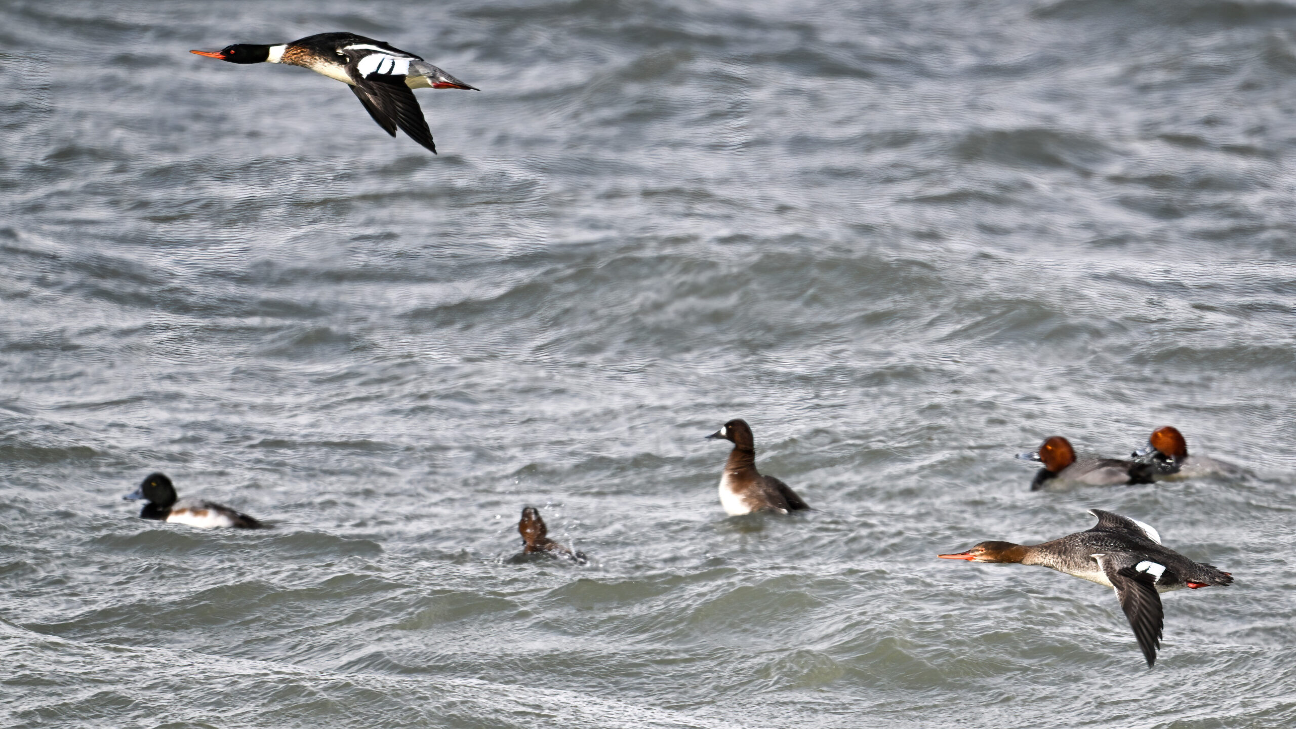 Lesser Scaup (m)Long-tailed Duck IIMale Red-breasted Merganser in flightLong-tailed Duck IIIRed-breasted MerganserRedhead (m – left) & Lesser Scaup (f – middle, m – right)Immature Red-breasted Merganser in flightFemale Lesser ScaupMale Redhead in flightSunny male RedheadMale Redhead in flight IIRedheads (f – left, m – right)Lesser Scaup in flightRed-breasted Merganser (f) in flight