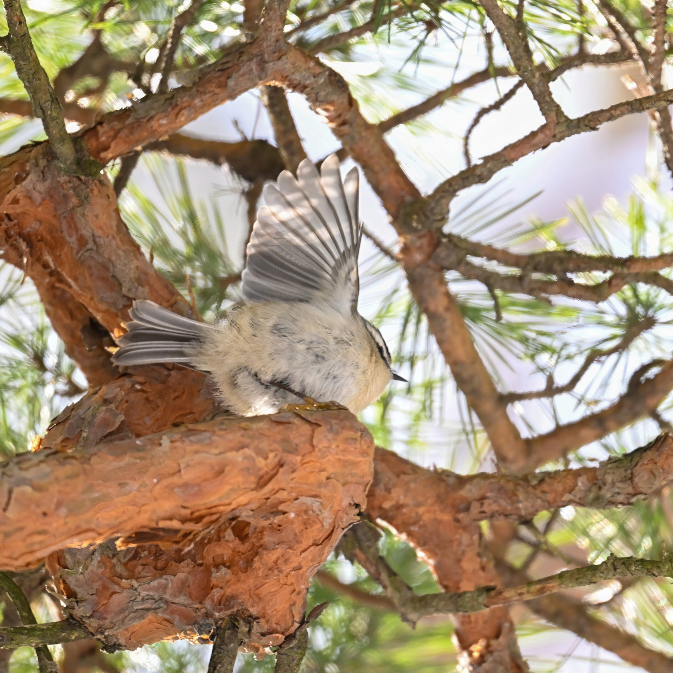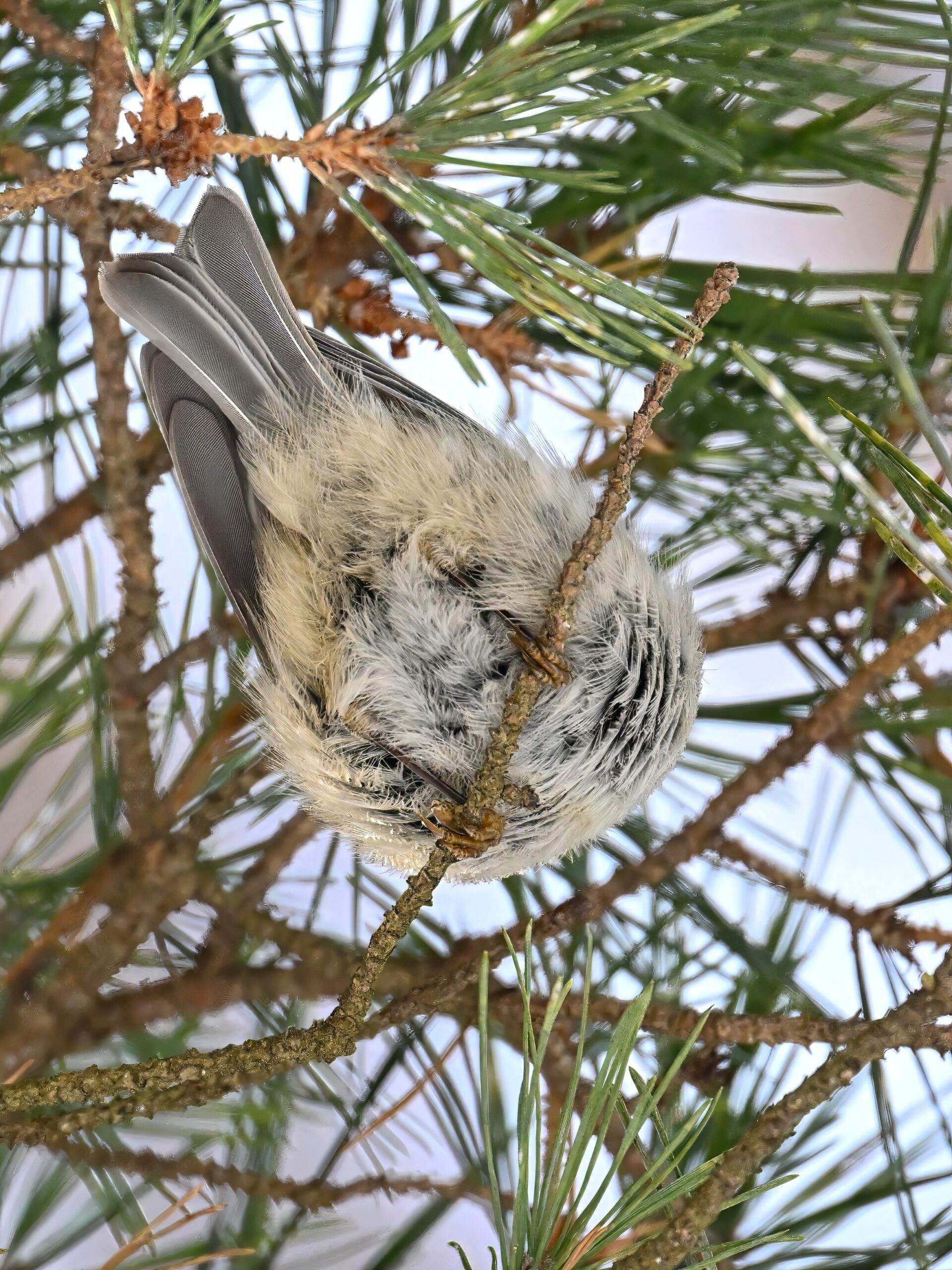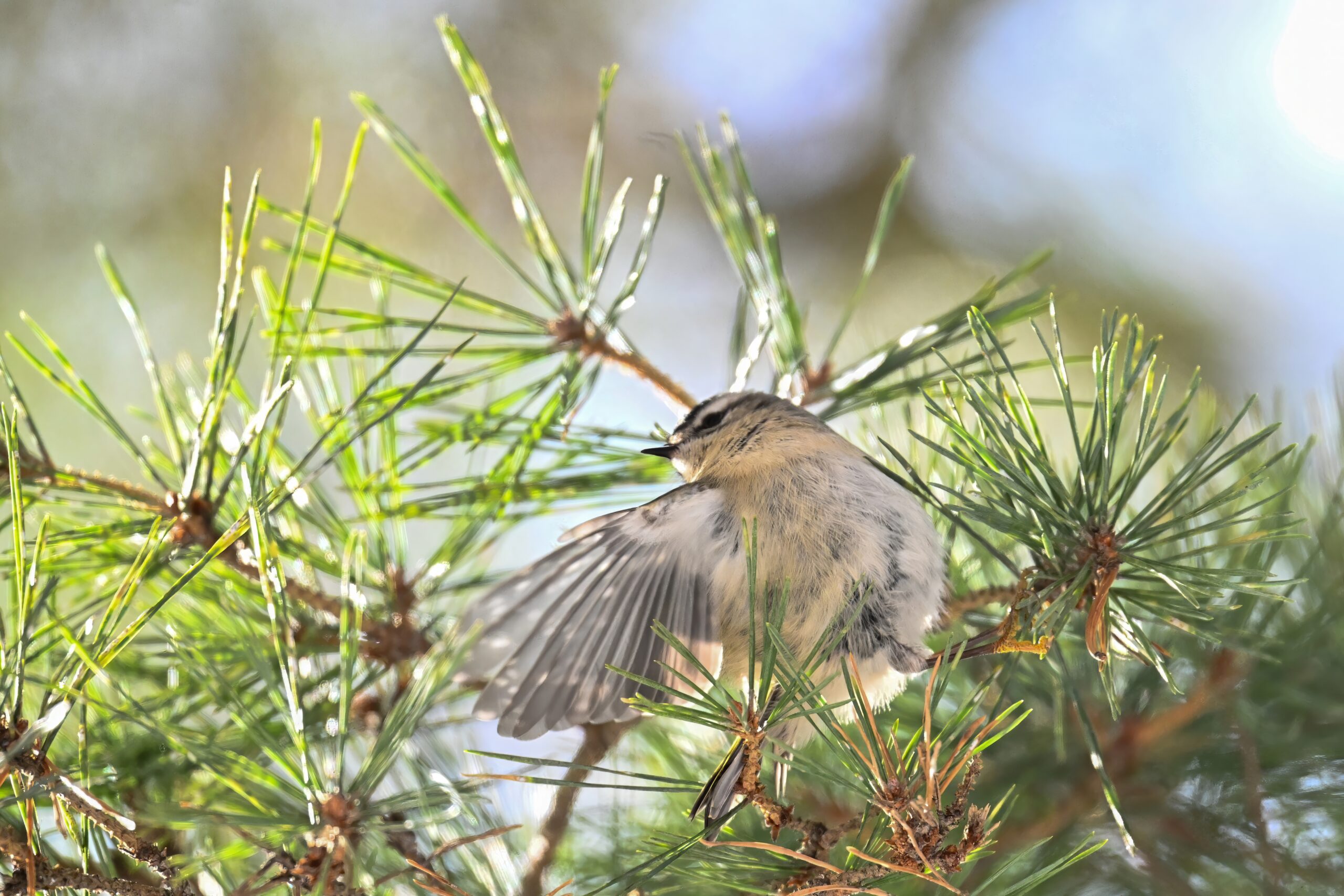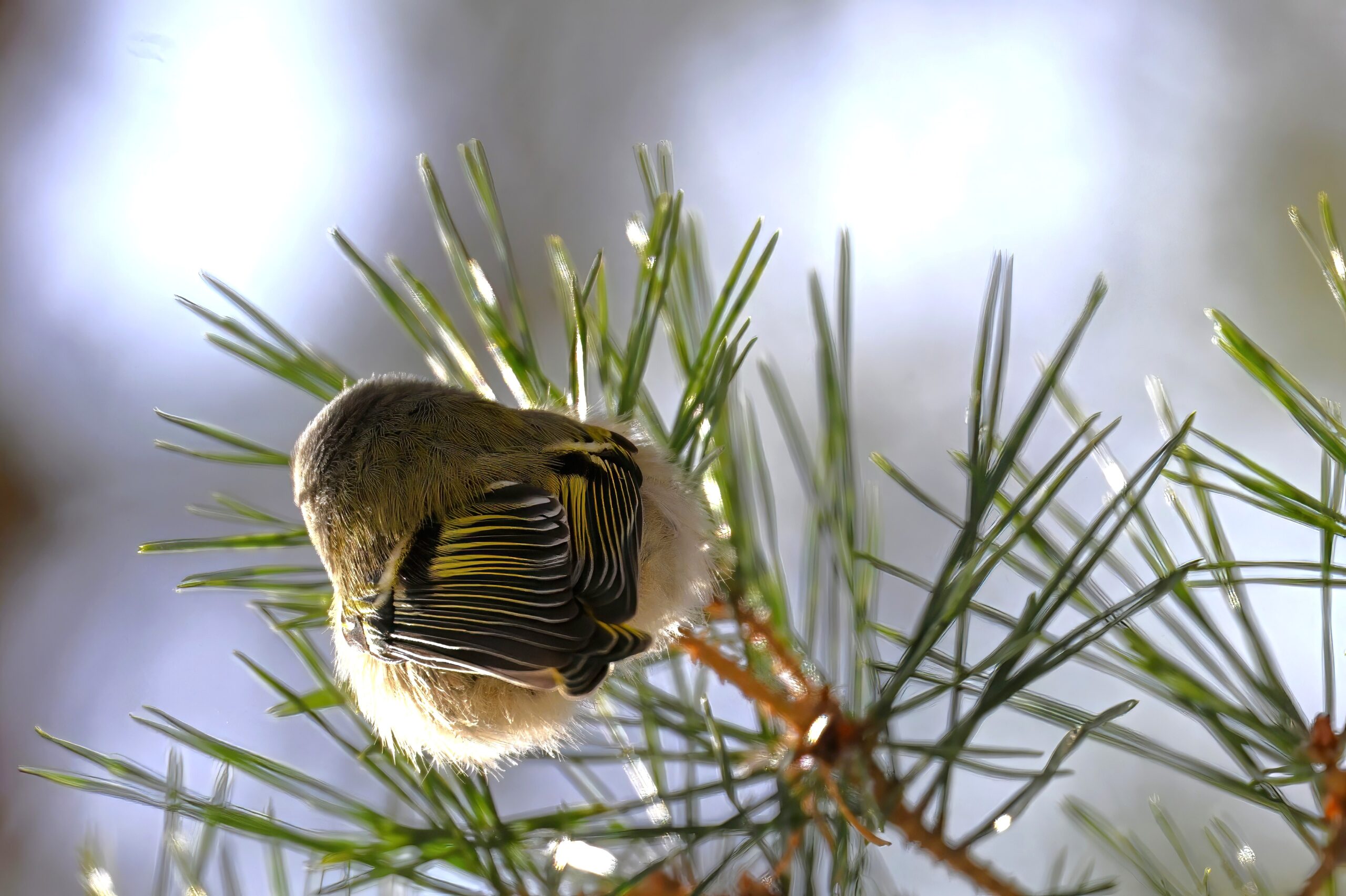 In today’s post, taking a break (temporarily) from ducks/South Pier with a beautiful Golden-crowned Kinglet yesterday in the pine woods at Presque Isle State Park. (Weather yesterday: sunny, temps around 9-10 deg F.) This individual perhaps the largest/fluffiest Kinglet we’ve ever seen.