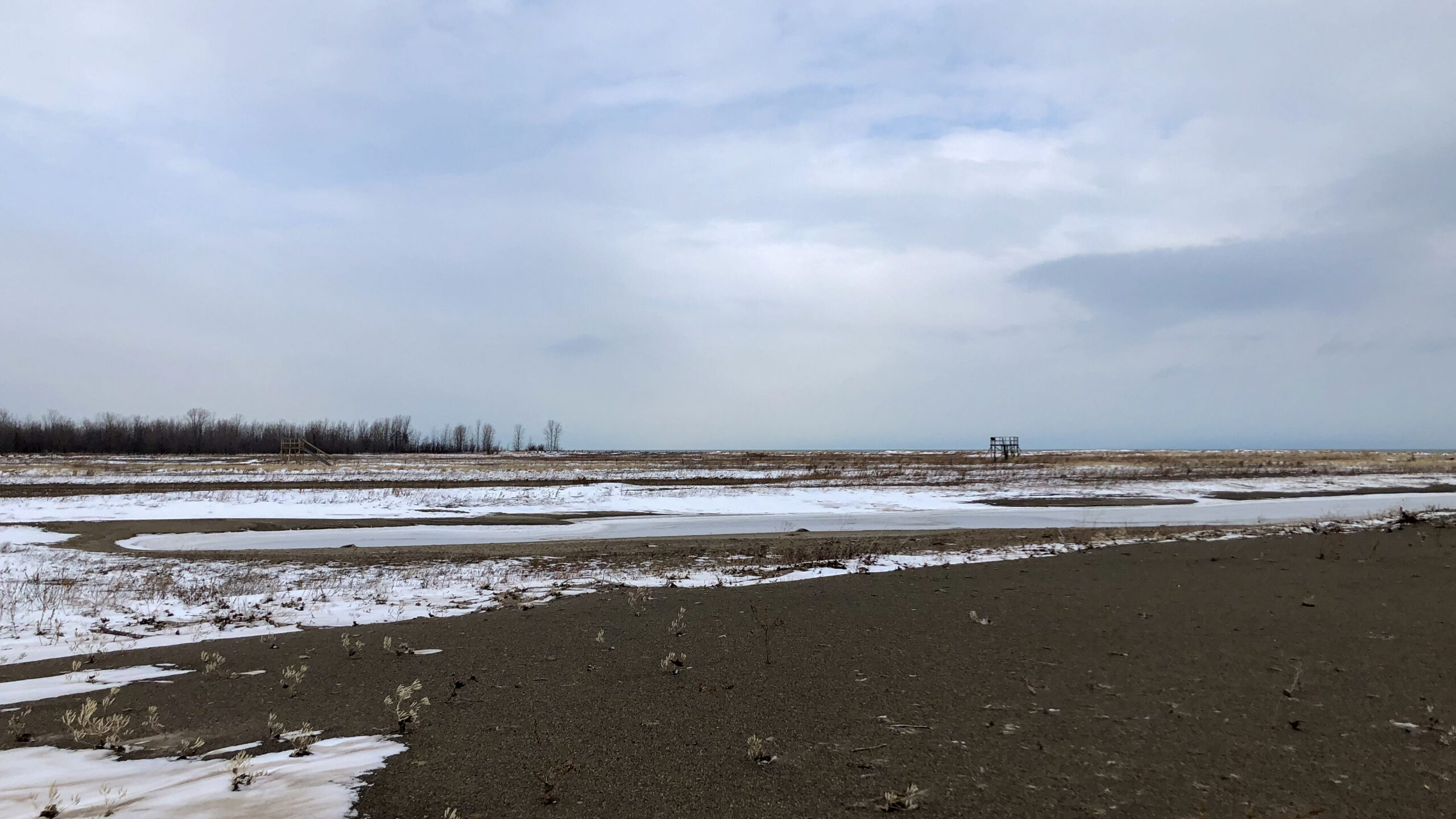 American Tree Sparrow (ATS) I at Gull Point tree lineRear view of Snow Bunting in flightATS IIATS IIIATS IVRear view of Snow Bunting in flight IIATS V!ATS VIRed-breasted Mergansers IVView north from Gull Point inland trail w/ outer Lake Erie at horizon