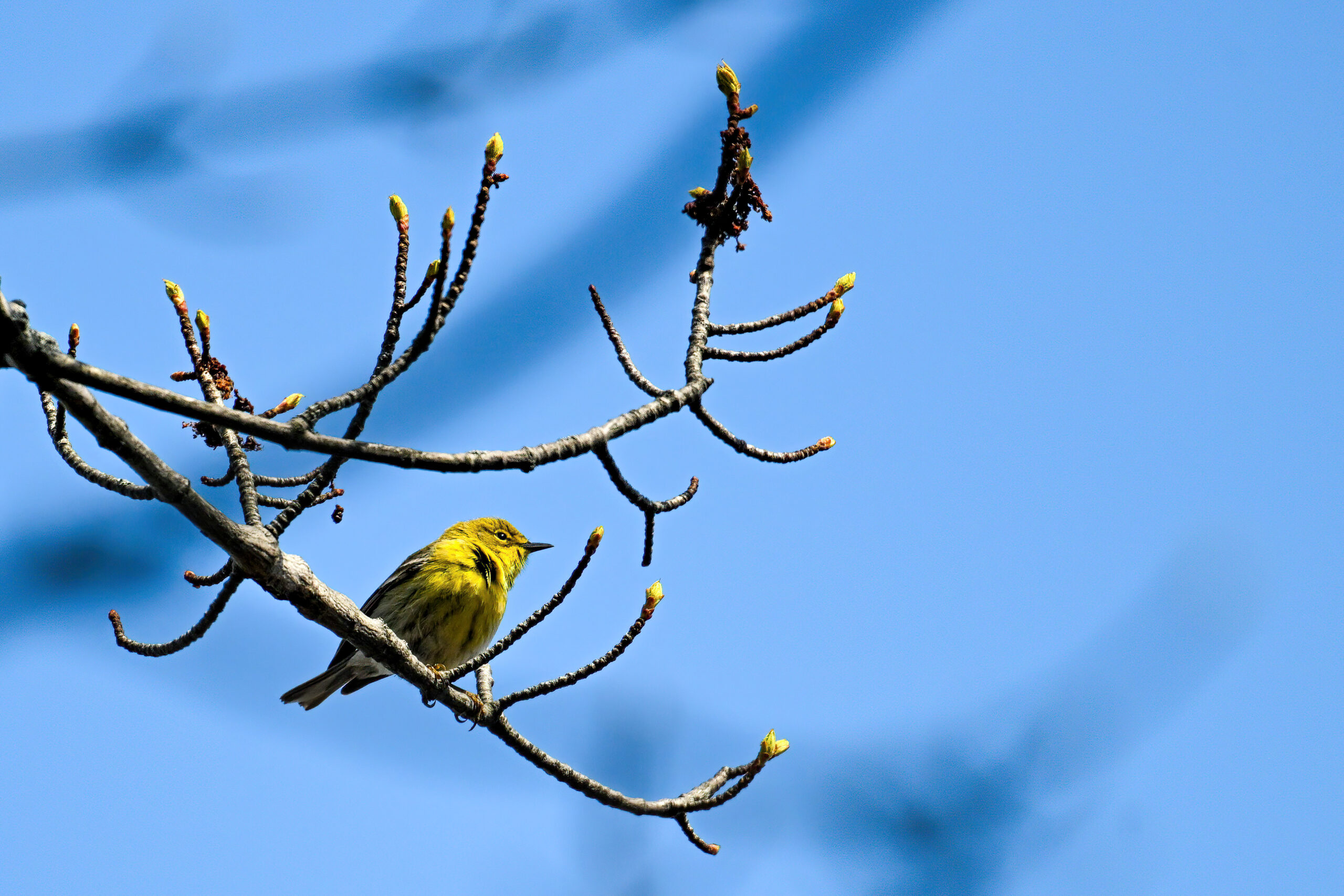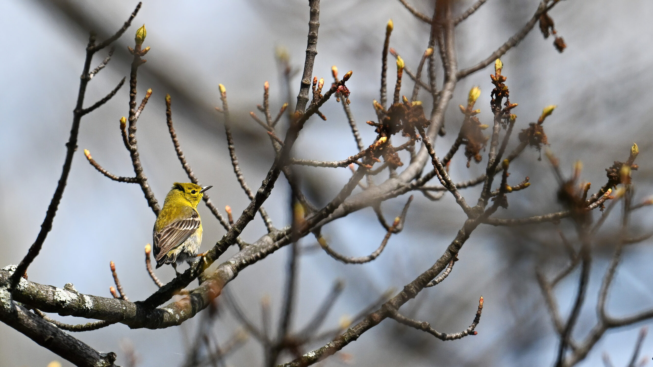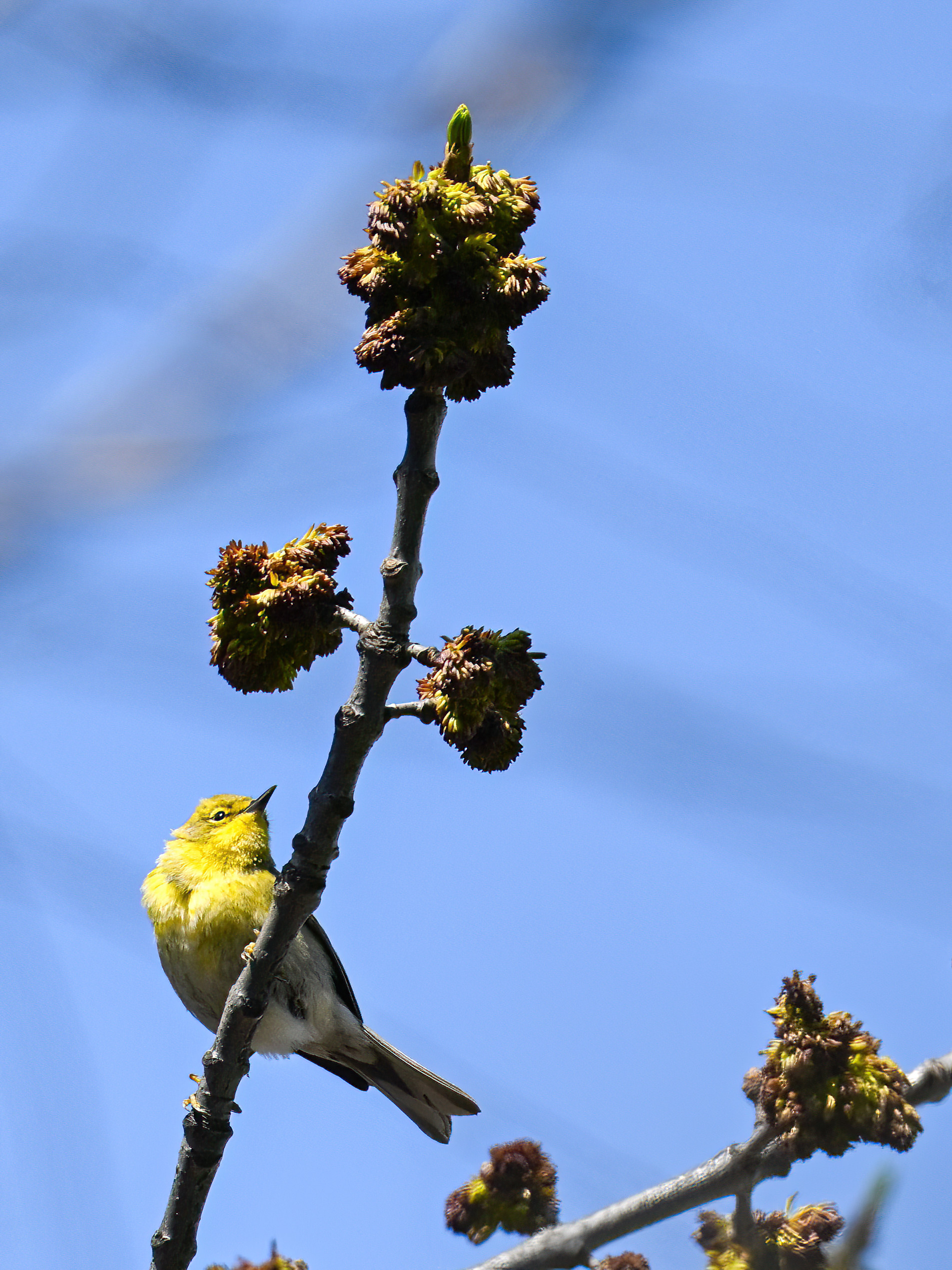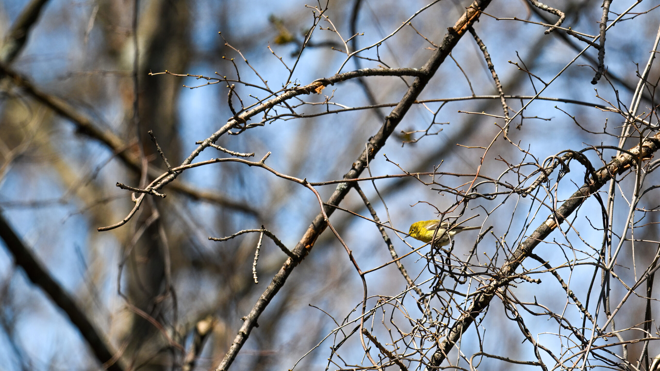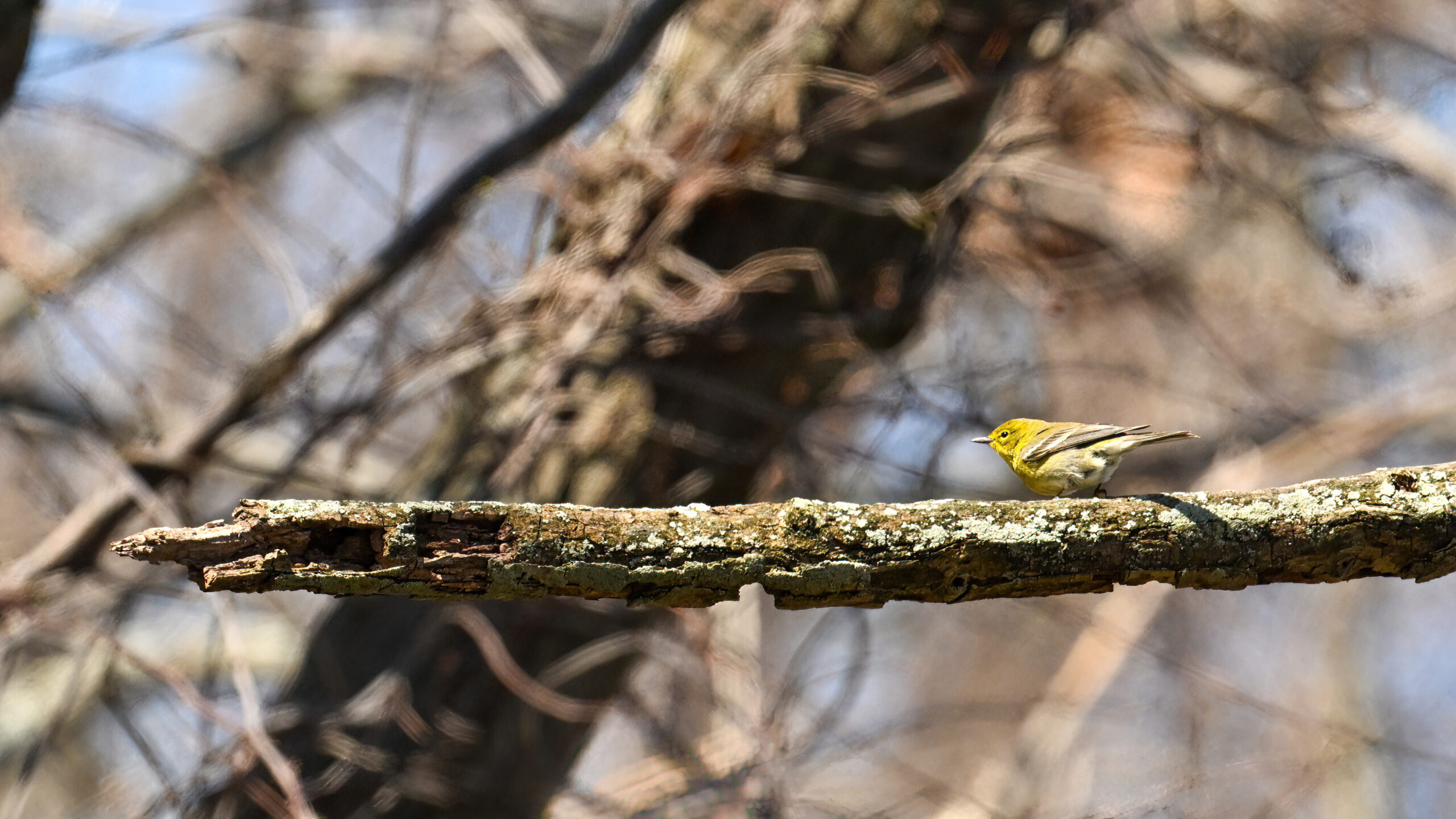 Not the best shots of Pine Warbler, but included to show wing colouration: