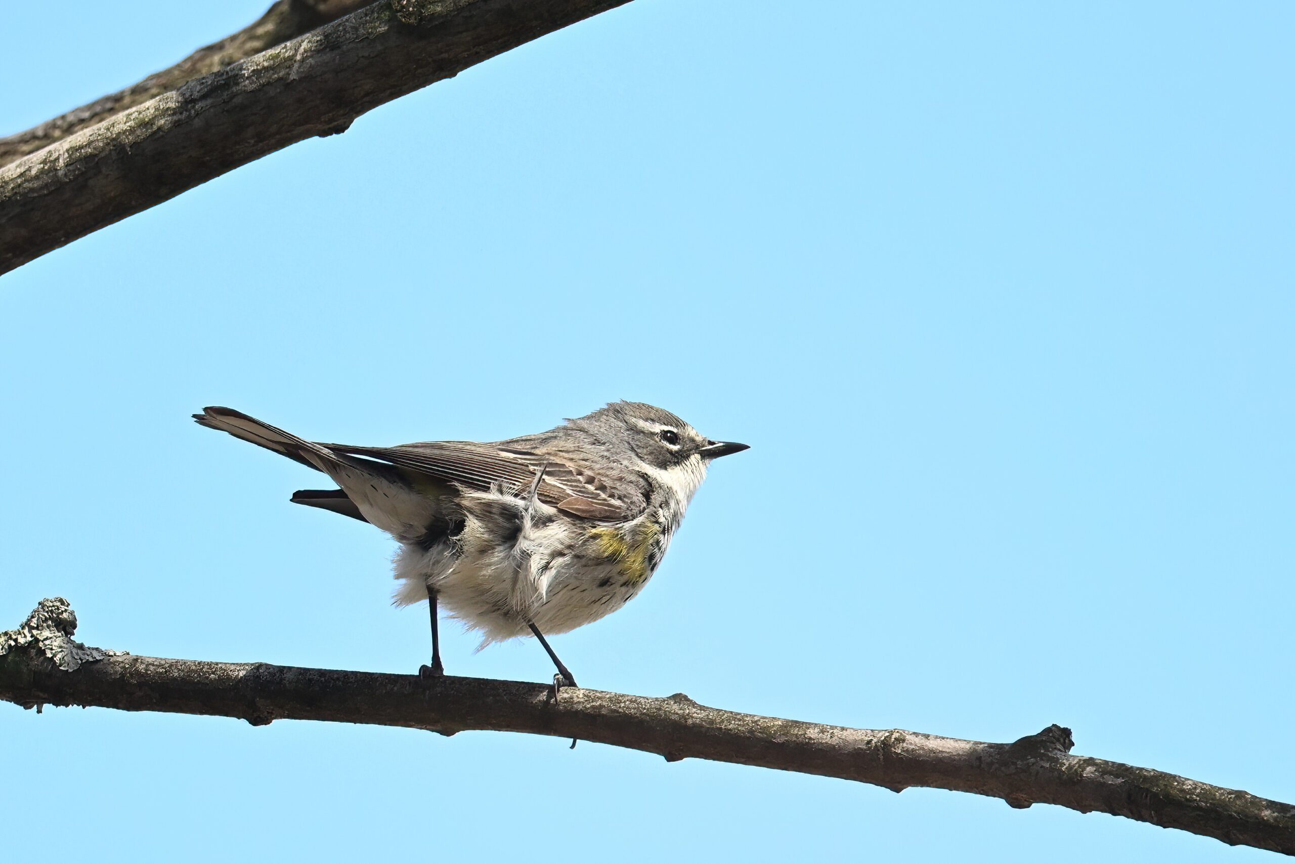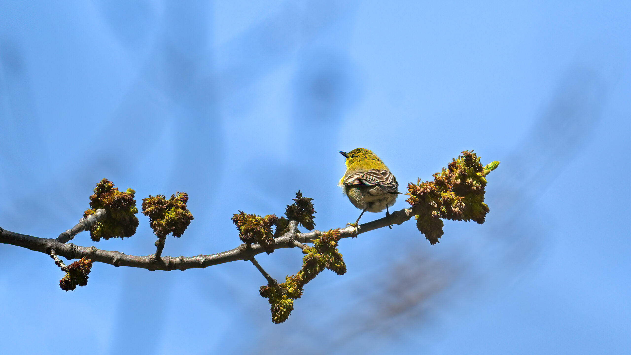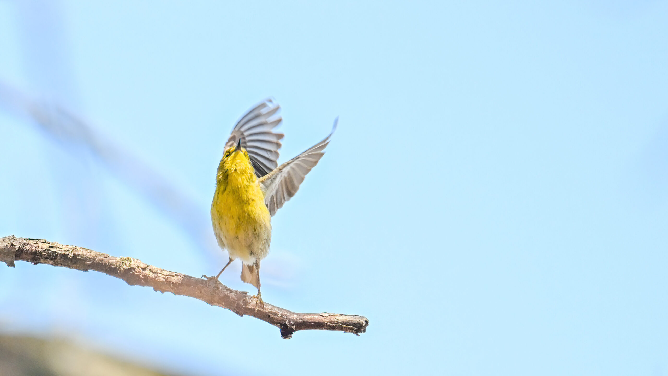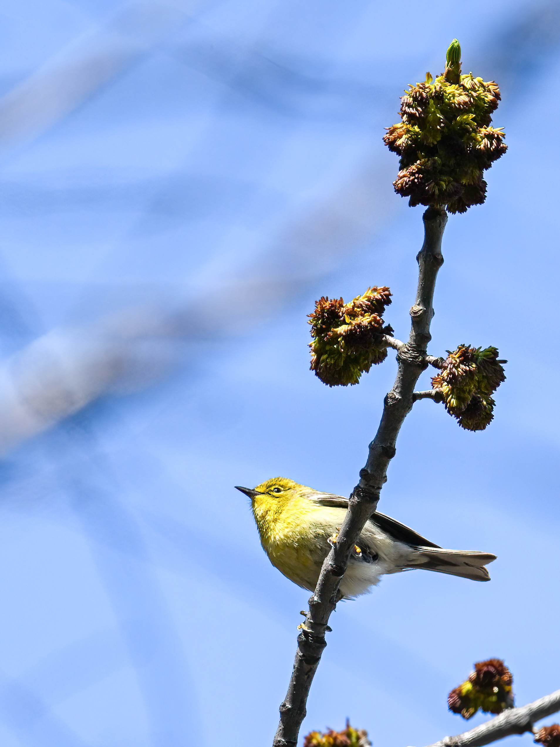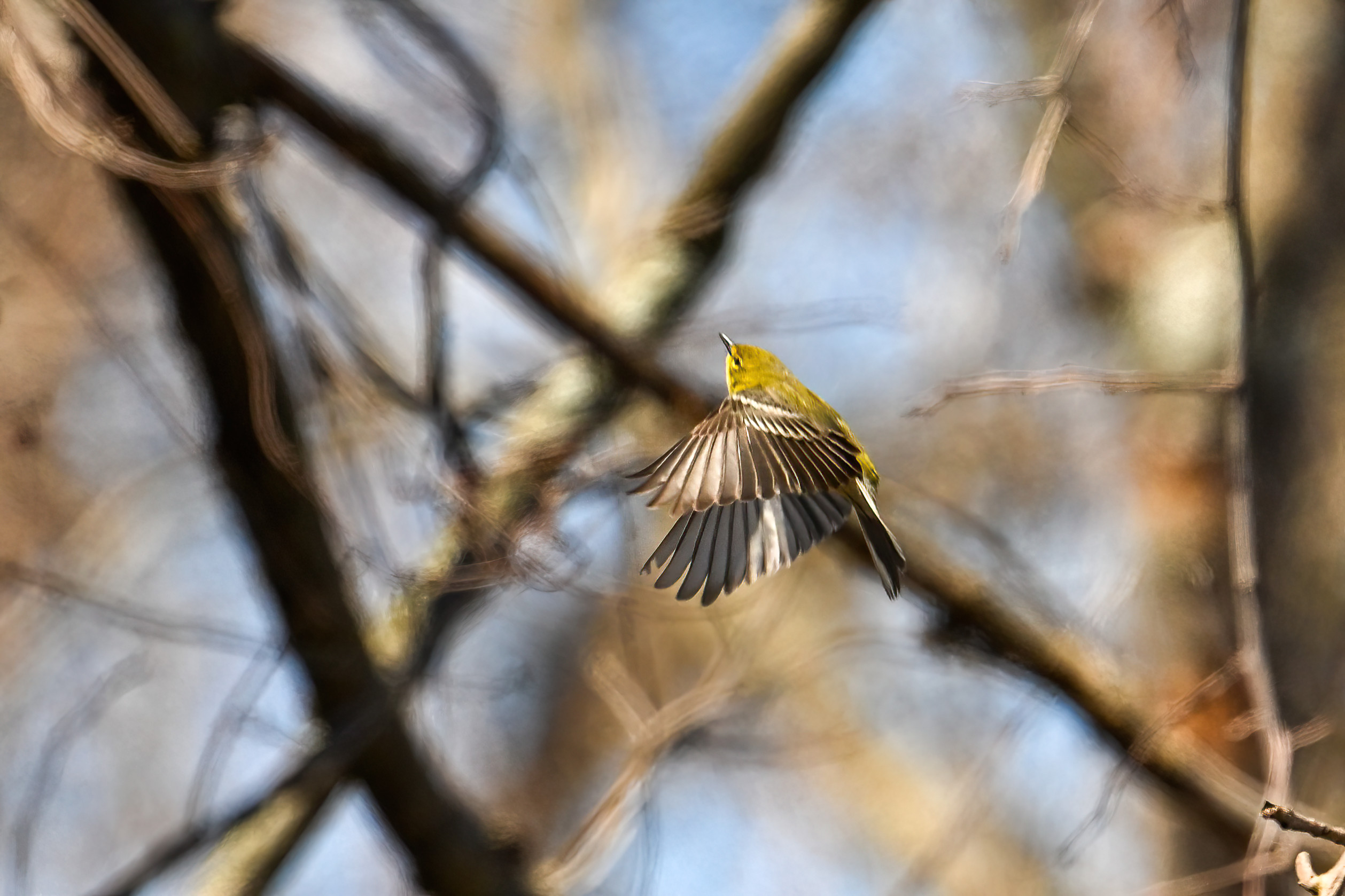 Not the best shots of Pine Warbler, but included to show wing colouration: